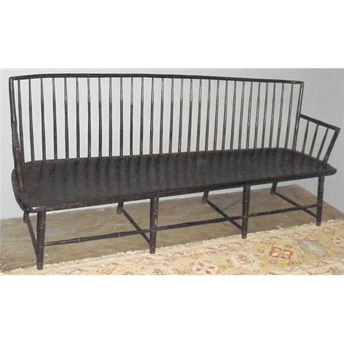 19th C. American Windsor Settle with Bamboo Turnings and Black finish