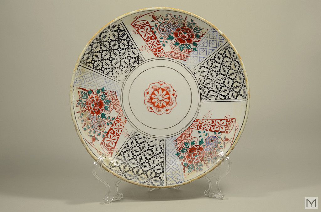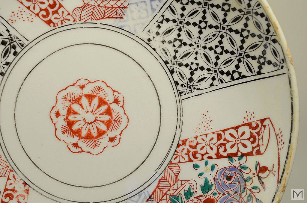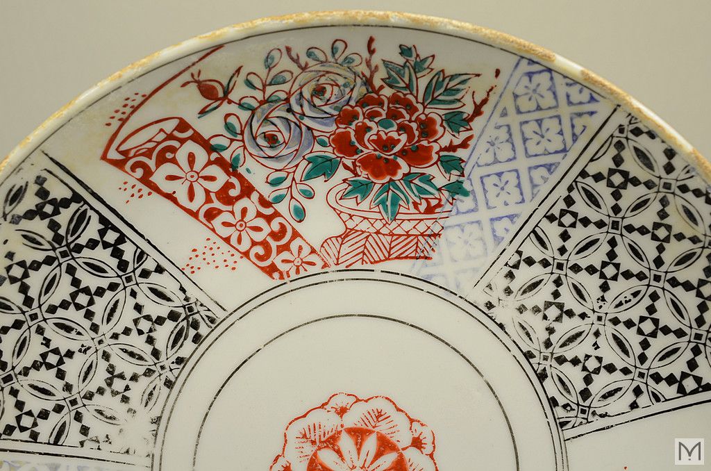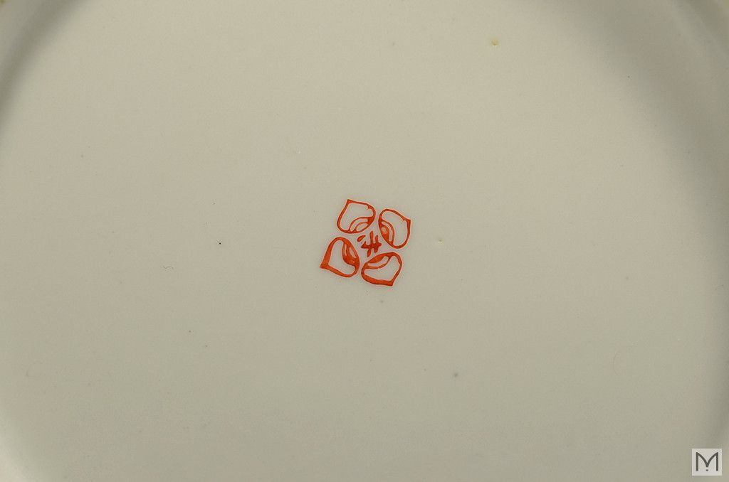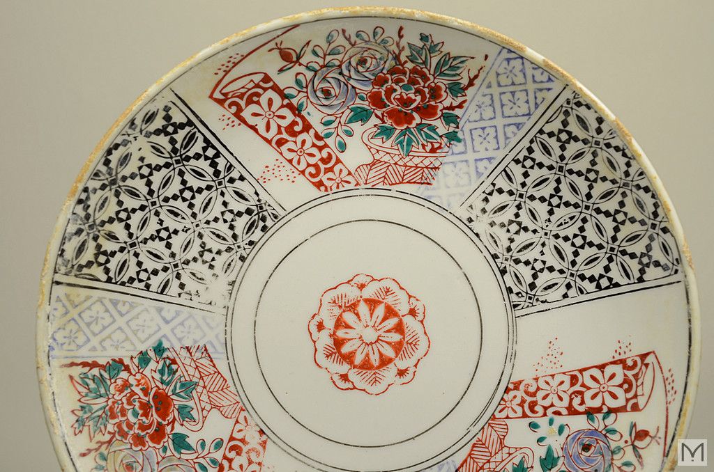 Very fine antique condition. Expected wear to painted decoration and minor chips along edge/rim. One large chip only visible from back of plate (as shown in images)