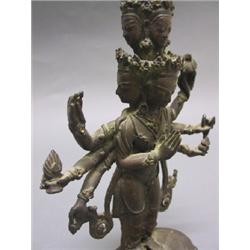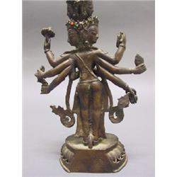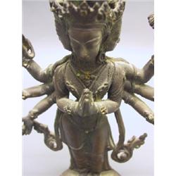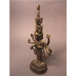 A finely cast bronze figure of the eleven headed Bodisattva in fine condition with some losses to the coral and turquoise beaded necklace etc. Tibet / Nepal, Late 19th C. 12 3/4" (32.5 cm) H.