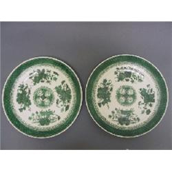 A pair of white porcelain plates decorated with green glazed floral patterns outlined in black. In fine condition. China, 19th C. 10" (25.5 cm) diameter.