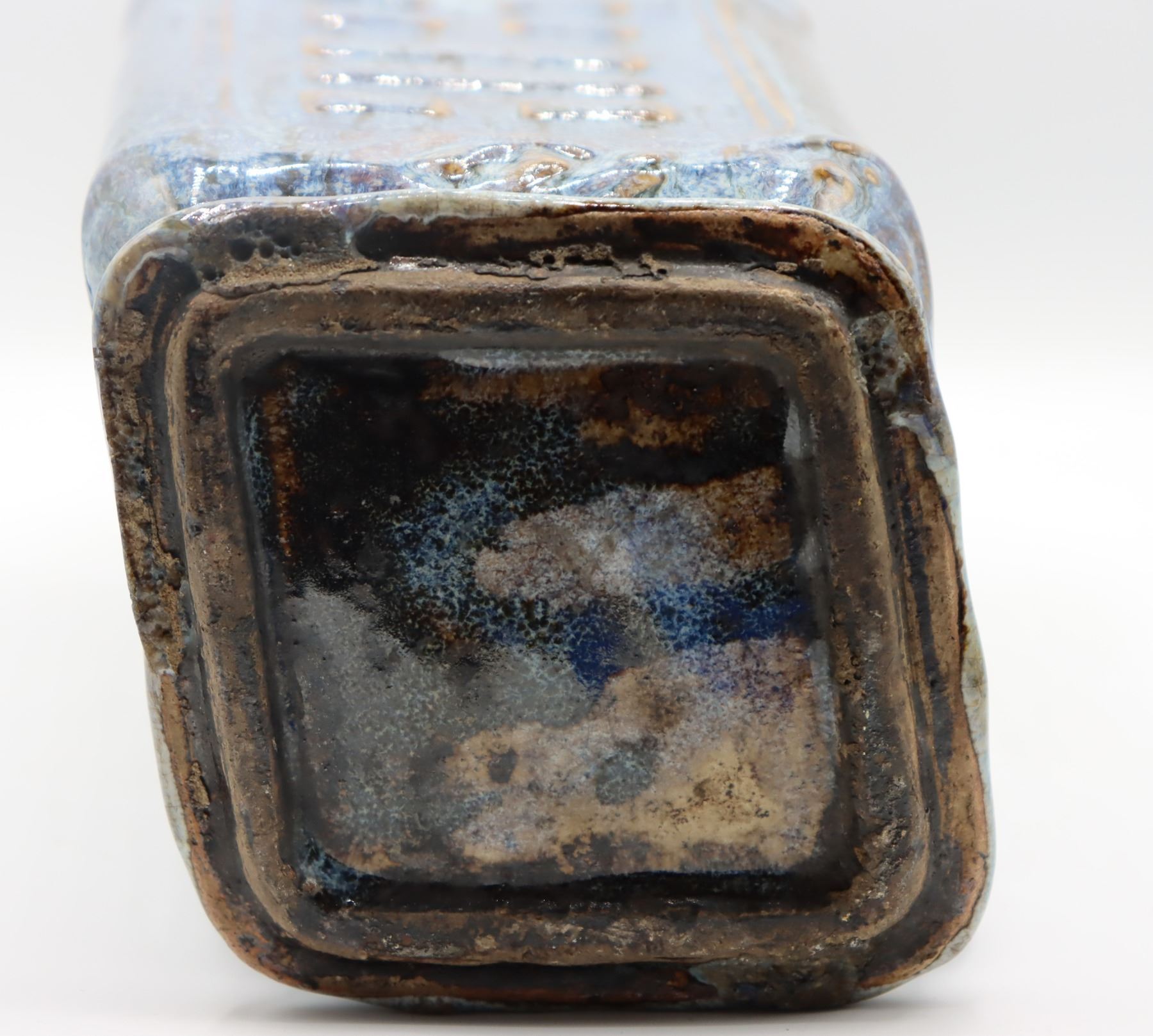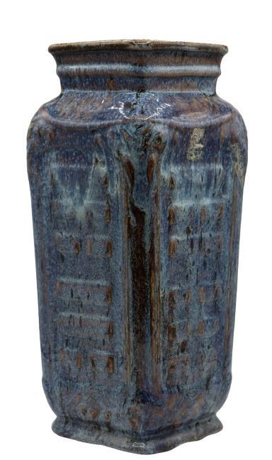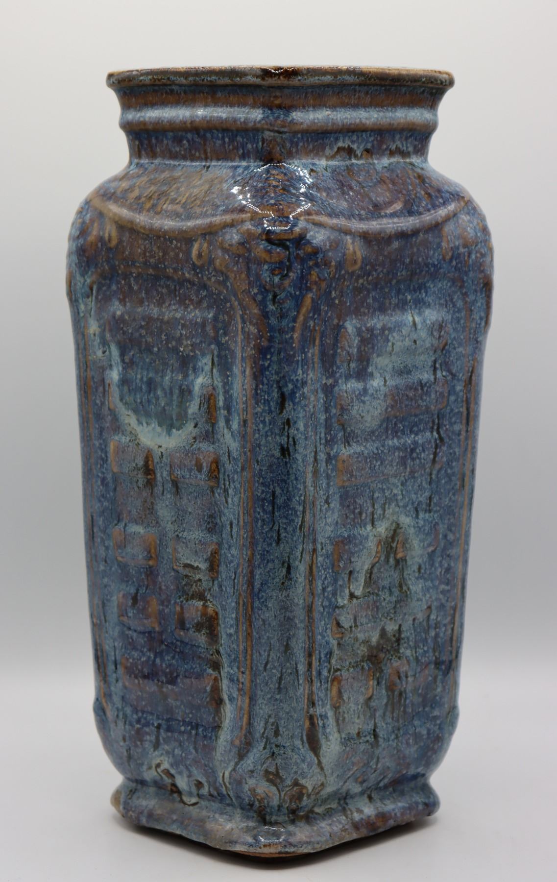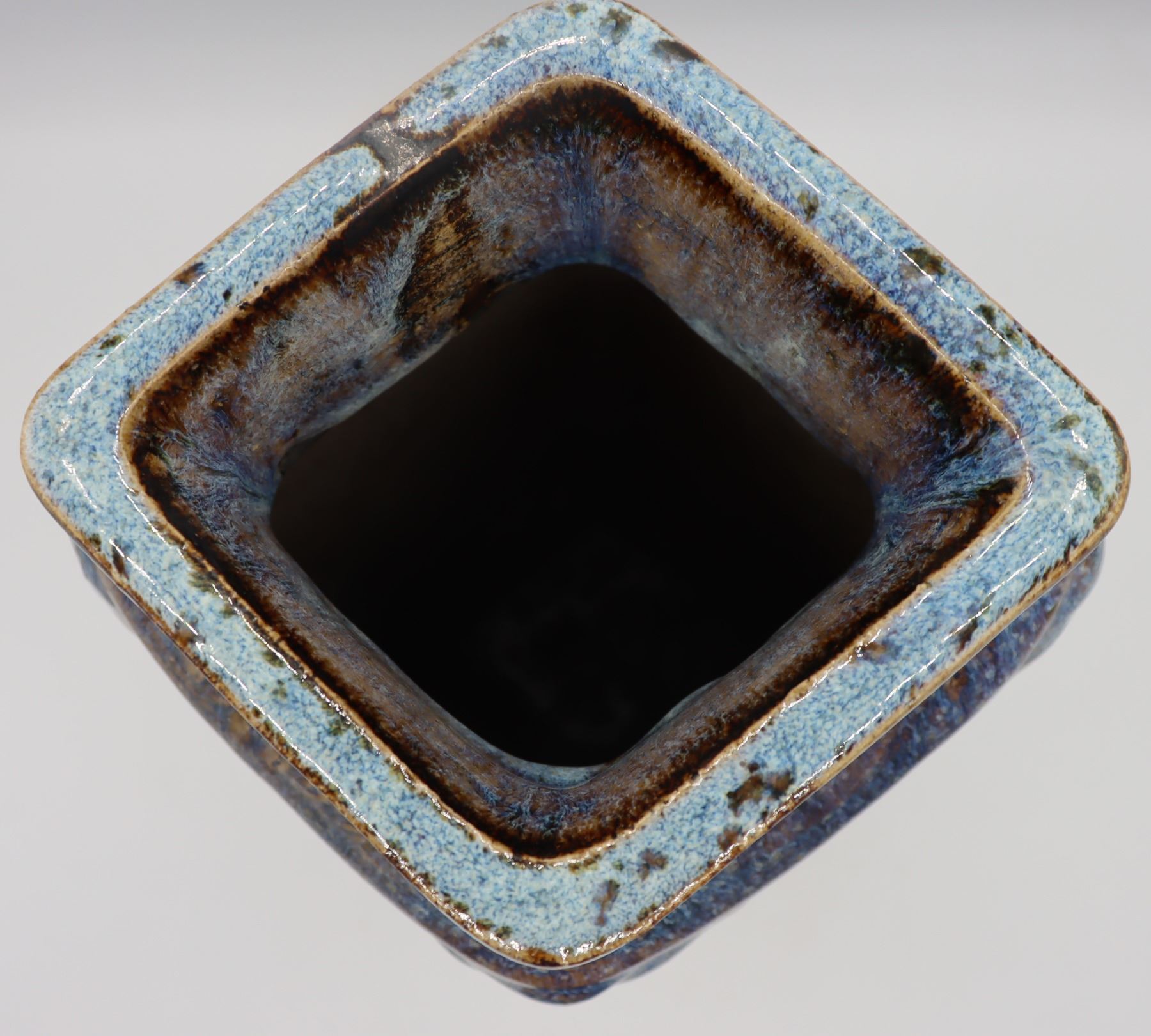 Square shaped tall blue ceramic vase,