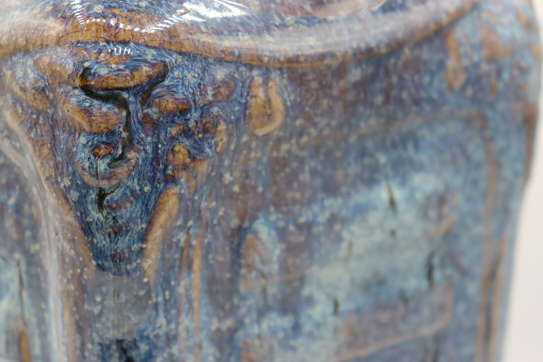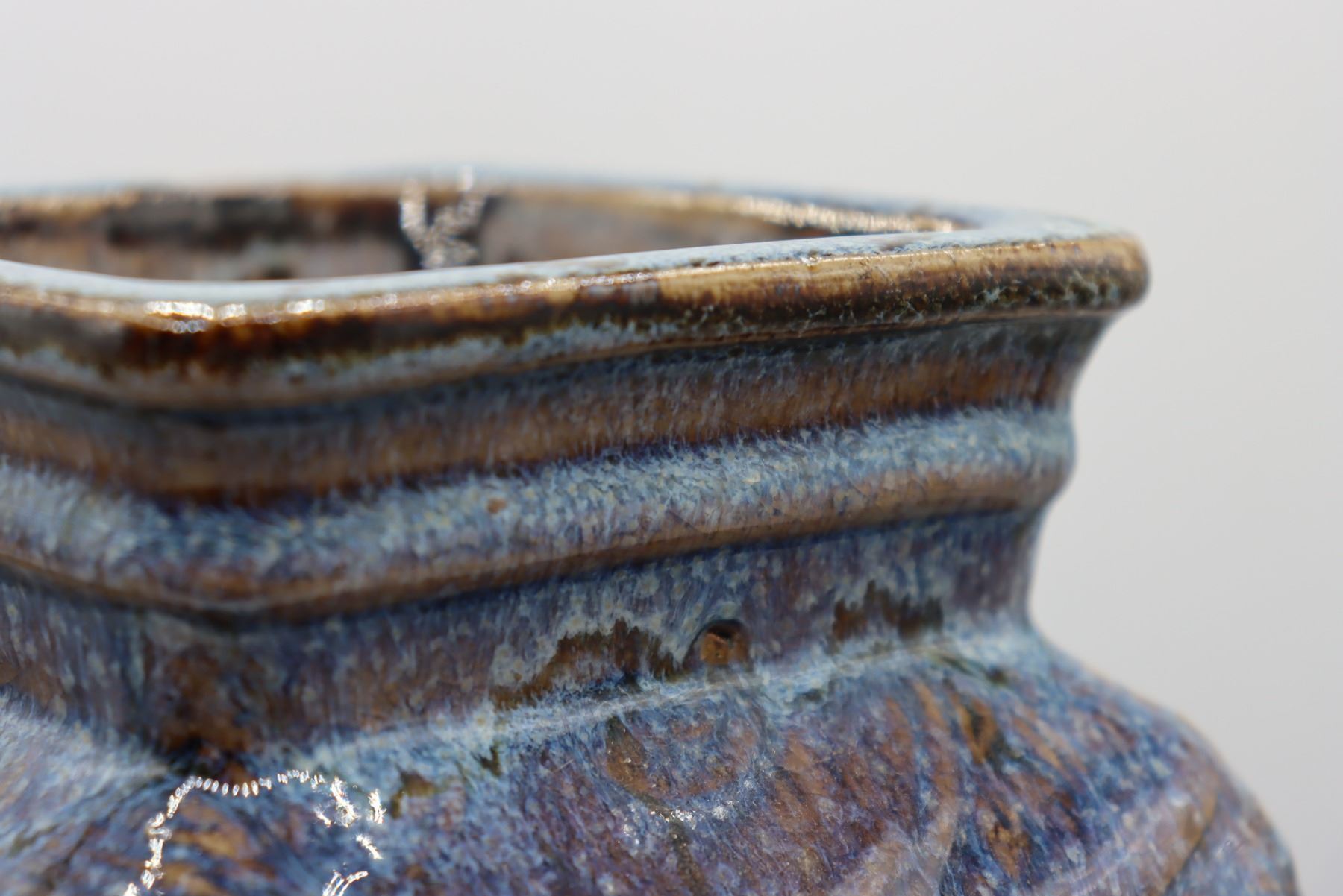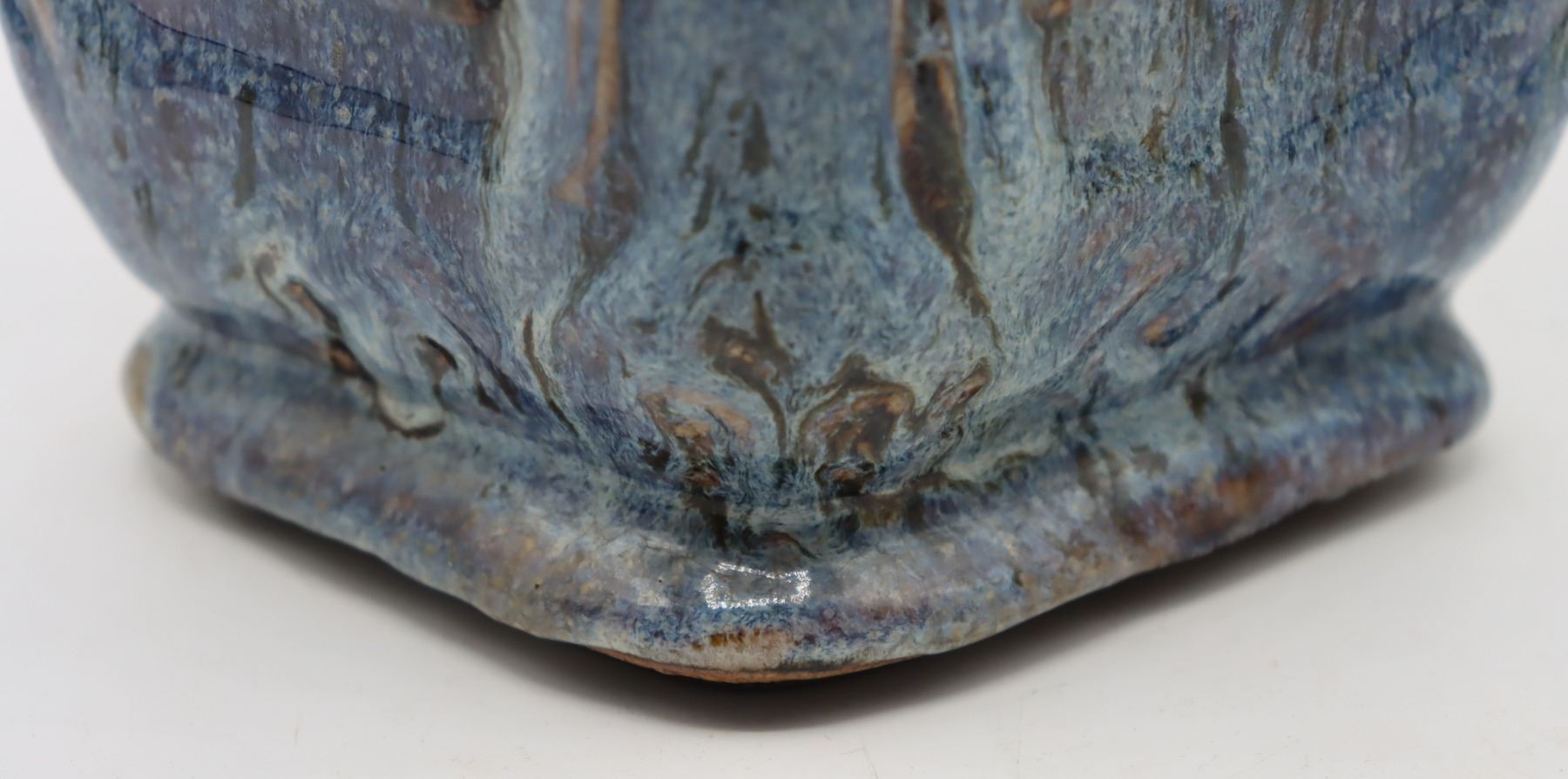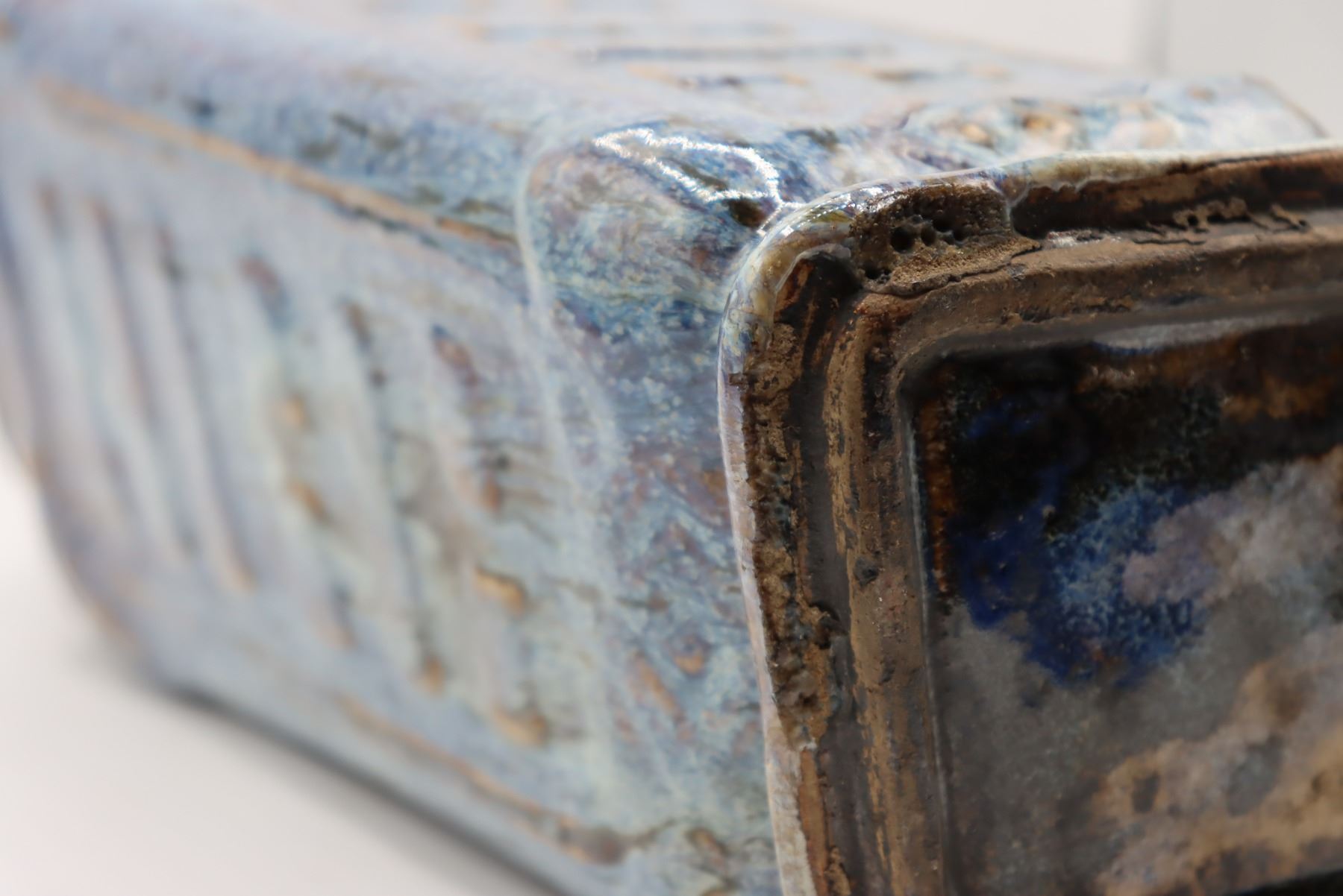 Square shaped tall blue ceramic vase,