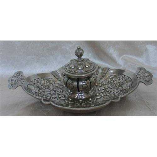 <tr><td>Title:19th C. Continental Silver Plate Inkwell</td></tr>