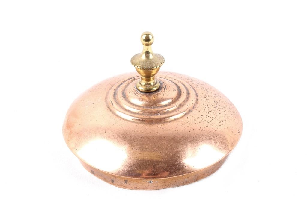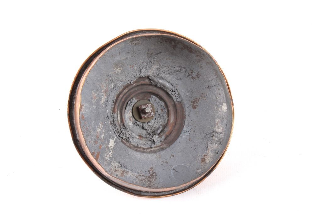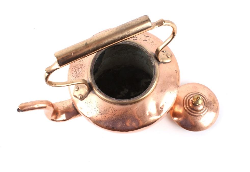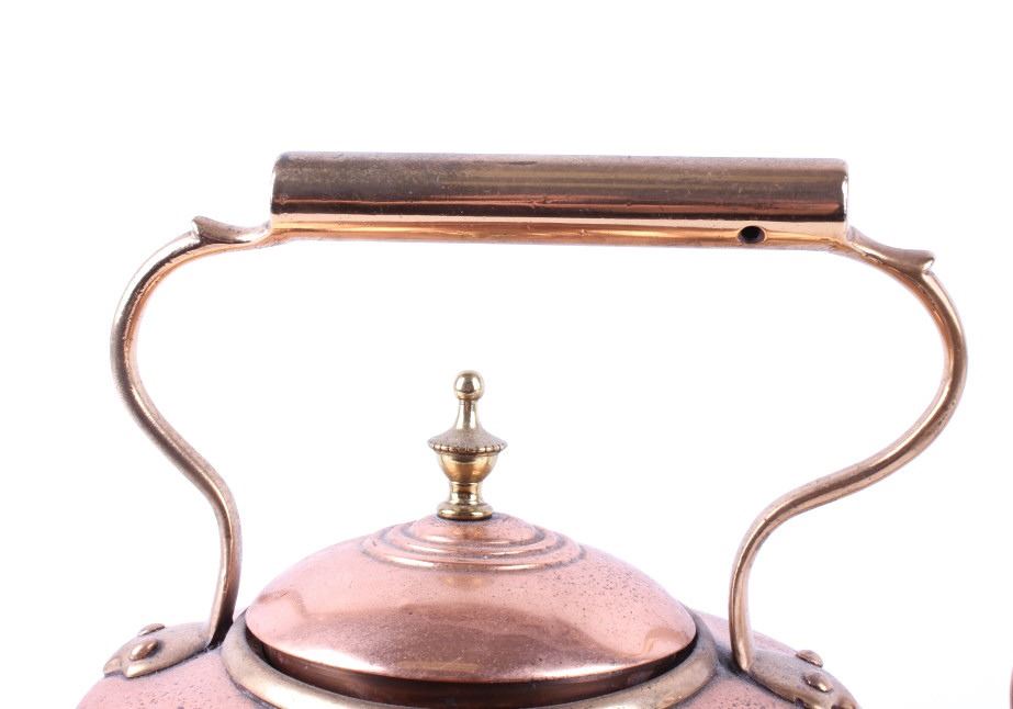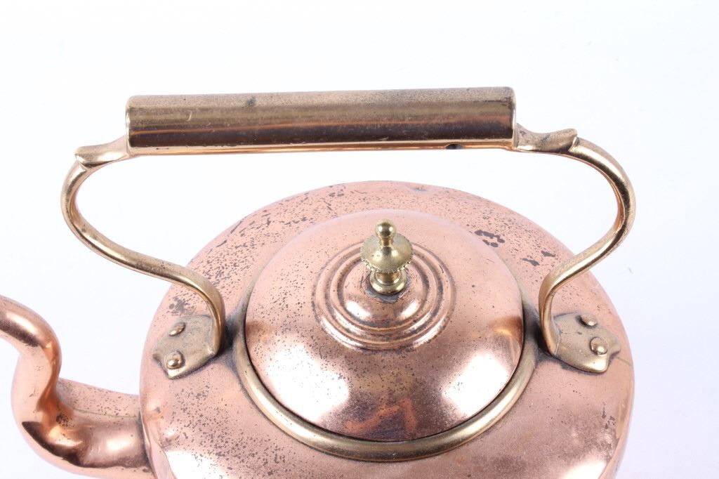 For your consideration is this 19th century copper dovetail Penn. gooseneck kettle. This kettle shows a Penn. gooseneck spout and a colonial style handle and traditional lid that fits perfectly into its body. This kettle shows very few dents and scratches though does show wear and age marks from use. The acorn lid handle is attached to an oval lid that fits snug into the body of the kettle. Pennsylvania goose neck is a style of spout that ends in an open mouth and set along the vertical dovetail joint on the body. This copper kettle is in good condition and shows a highly collectable figure with the kettle showing a well crafted and easily seen dovetail joint on the bottom of this kettle and up its body and spout. The measurements of this of this kettle are 11" x 11" x 8"