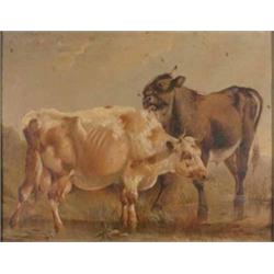 19th C. Dutch School oil on canvas, Cattle watering, 14 x 18 ins. £600-800