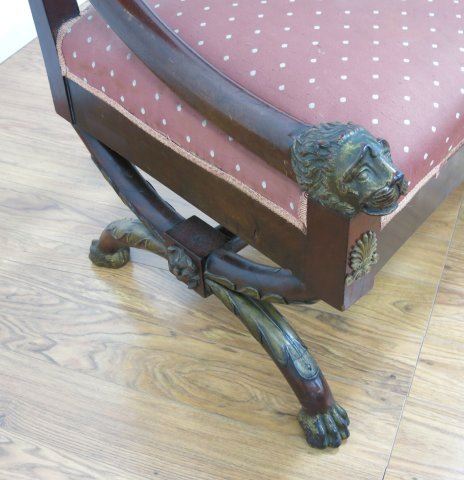 Approx. 34" H x 67 1/2" W x 27" D. Legs reinforced. Gilding worn. Marks & scratches.