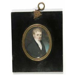 19th C. English School watercolour on ivory, Portrait of a young man, Oval, 2.5 x 2 ins. £80-120