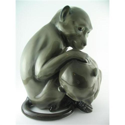 I am very pleased to offer this absolutely stunning figure featuring two spider monkeys grooming each other. Done in a very rich dark grey to subtle brown tones glaze with a high gloss finish, the artisanship is superb. Measuring 7" high by 6" wide and 6" long this figurine is in EXTRA FINE condition. The subjects are done with the finest details and the coloring makes this piece breathtaking. As good as they look in my images it is much more spectacular in person. The eyes were painted in a lovely Sienna Brown to Gold and look life like. Marked on the base with the Makers Mark on the unglazed base, it shows: Green "G" with a "P" inside the "G". There is an impressed number 5222 as well as a Black "GERMANY" marked on the underside rim of the longest tail. The Maker's Mark denotes Pfeffer, Fr. Gotha Porcelain Factory circa 1892.