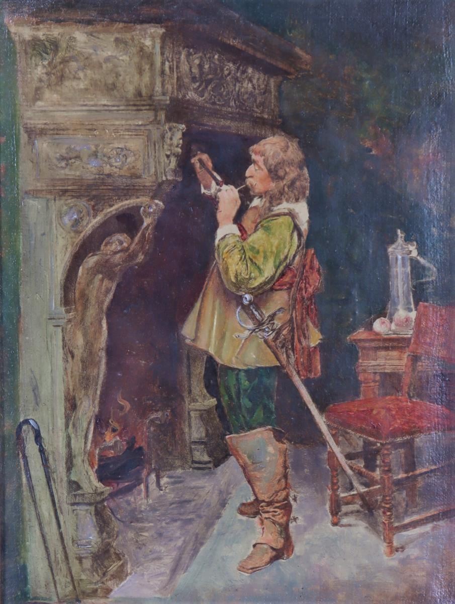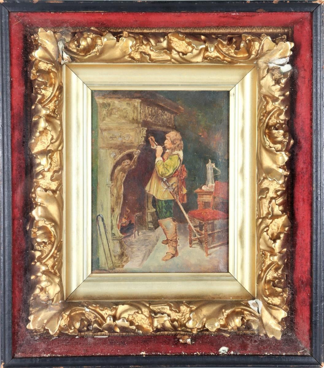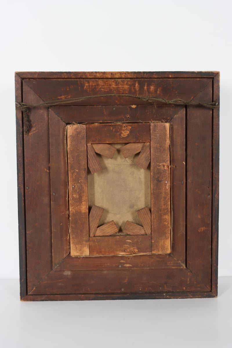 Unsigned, Painting in frame enclosed in glass case. Frame has several areas of flaking. Size: O 16 x 14 in. S 9 x 7 in.
