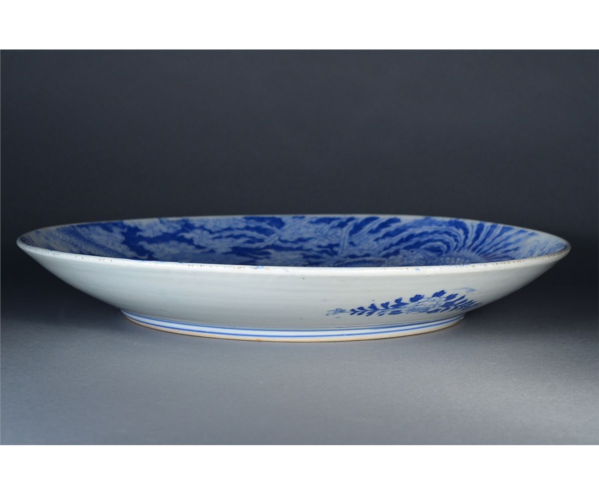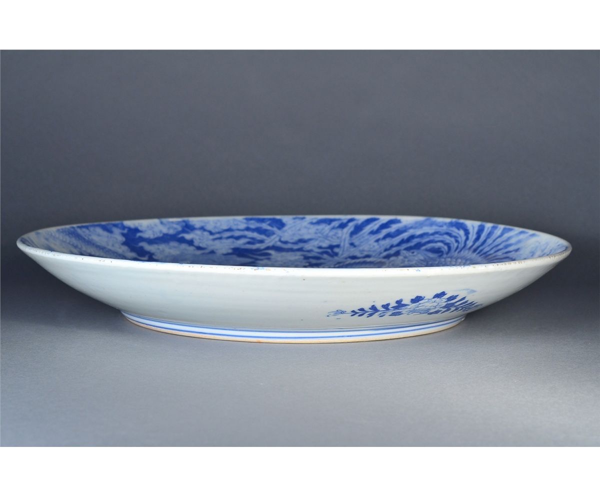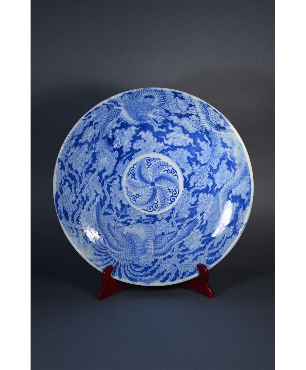 19th Century Japanese Imari plate; featuring dragon and phoenix; D: 46 cm, H: 6 cm; this lot has been relisted due to non-paying bidder Bagua Zhang from Toronto, Ontario