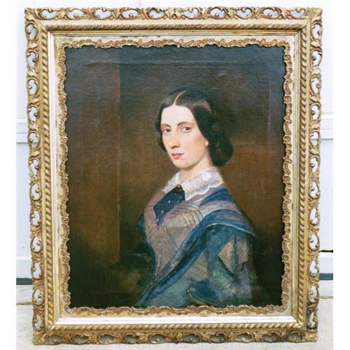 <table width="100%" border="0" cellspacing="0" cellpadding="4"><tr><td><em> Attractive 19th.C. Portrait in Beautiful, Period Silver Leaf Ornate Frame!</em></td></tr><tr> <td width="100%"> Terrific early portrait in oil on canvas with period, pierce carved frame in champagne silver leaf! Profesionally cleaned and restored, relined and ready to hang and enjoy...From a Roswell, Ga. estate, this great mid nineteenth century portait depicts a handsome, dignified woman in a fetching blue dress looking at the viewer with a quiet confidence...Guaranteed old and as described; very good condition...Thank you for looking--Chas. </td></tr><tr> <td> </td></tr><tr> <td>Reference #: 102</td></tr><tr><td>Condition:Very Good</td></tr><tr><td>Year:1850</td></tr><tr><td>Country:usa</td></tr><tr><td>Maker:unknown</td></tr><tr><td>Height:38</td></tr><tr><td>Depth:2</td></tr><tr><td>Width:32</td></tr><tr><td>Weight:15</td></tr><tr><td>Title:19th C. Lady in Blue</td></tr><tr><td>Style:Impressionist</td></tr><tr><td>Materials:wood/canvas</td></tr><tr><td>Location:Atlanta, GA</td></tr></table>