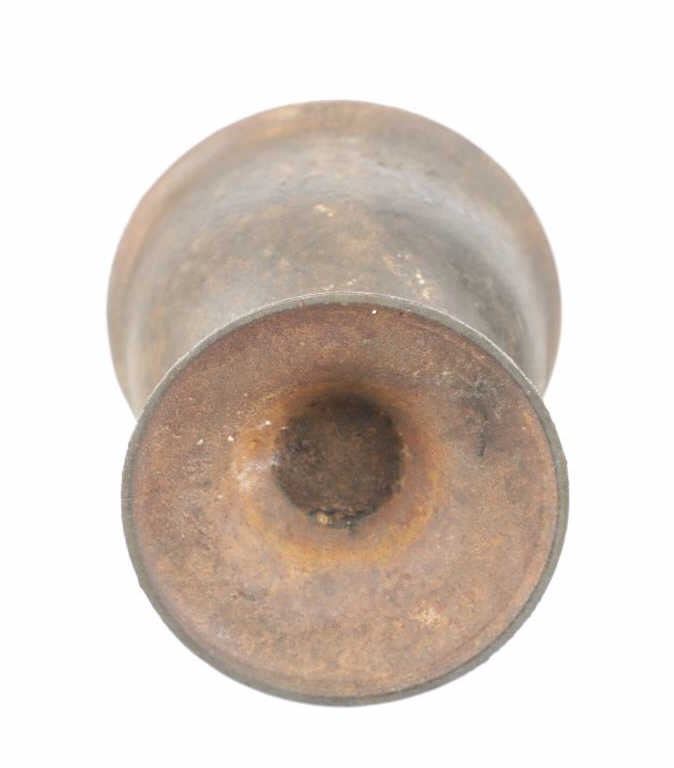 Featured in this lot is this 19th century large cast iron mortar and pestle. The mortar and pestle features a wonderfully and professionally crafted cast iron construction that shows a large basin and shows a flared lib with a fashioned foot. The condition of this mortar and pestle features a good overall condition with no obvious signs of damage and shows good overall condition. The measurements of this cast iron mortar and pestle is 9 1/2" x 7" x 7". The collective weight of this mortar and pestle is 12lb 2 oz..