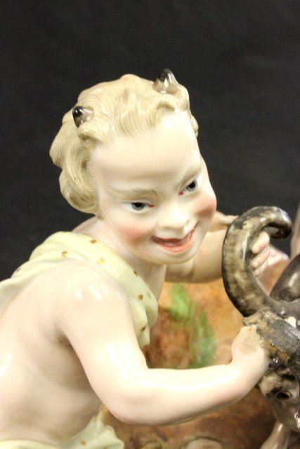 Depicting ram and child Satyr on rocks. Approx. 10" by 7 1/2" by 6 1/2". ( 032831A)