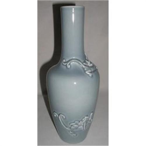 Very good 19th c. Chinese monochrome glazed levender color porcelain vase with two coiled dragons in fine condition. From a good local Asian collector's estate.