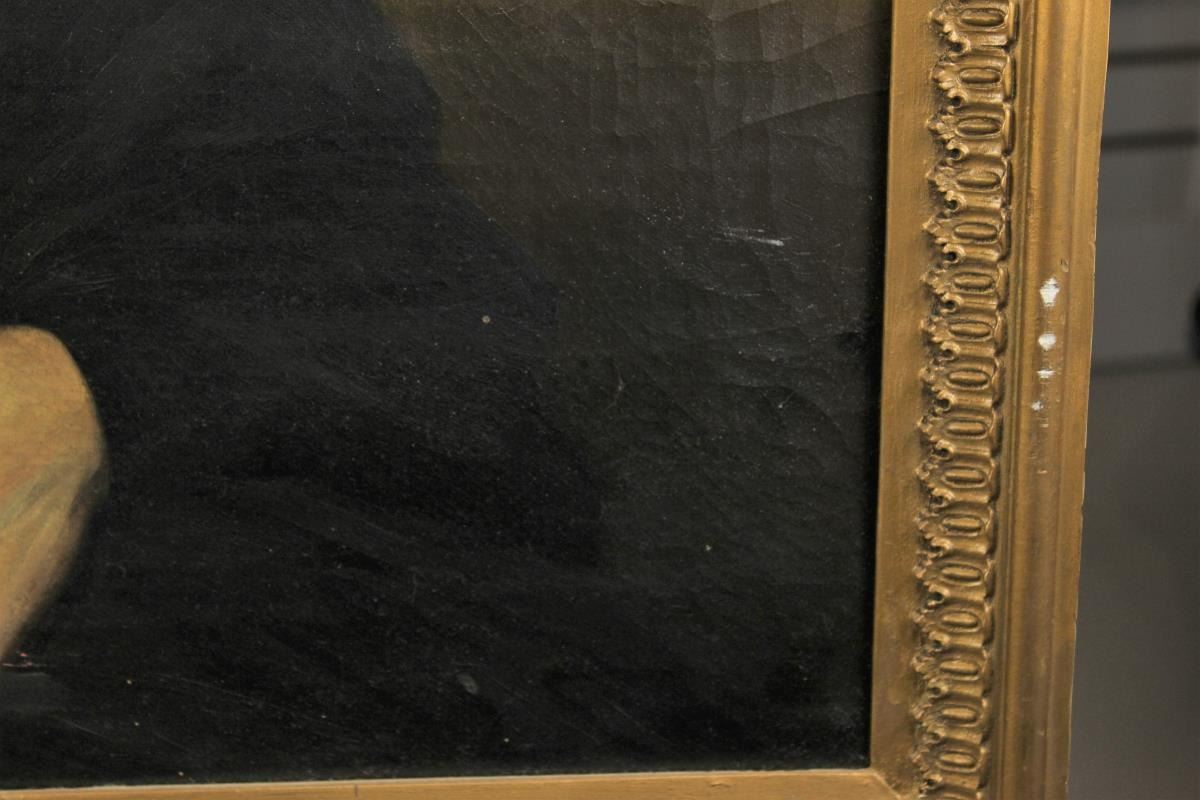 19th C, oil on canvas, portrait of seated woman. nice gilt frame.