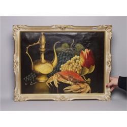 19th C. Oil on Canvas Laid Down Still Life Signedf Paint Flaking J.A. Luna