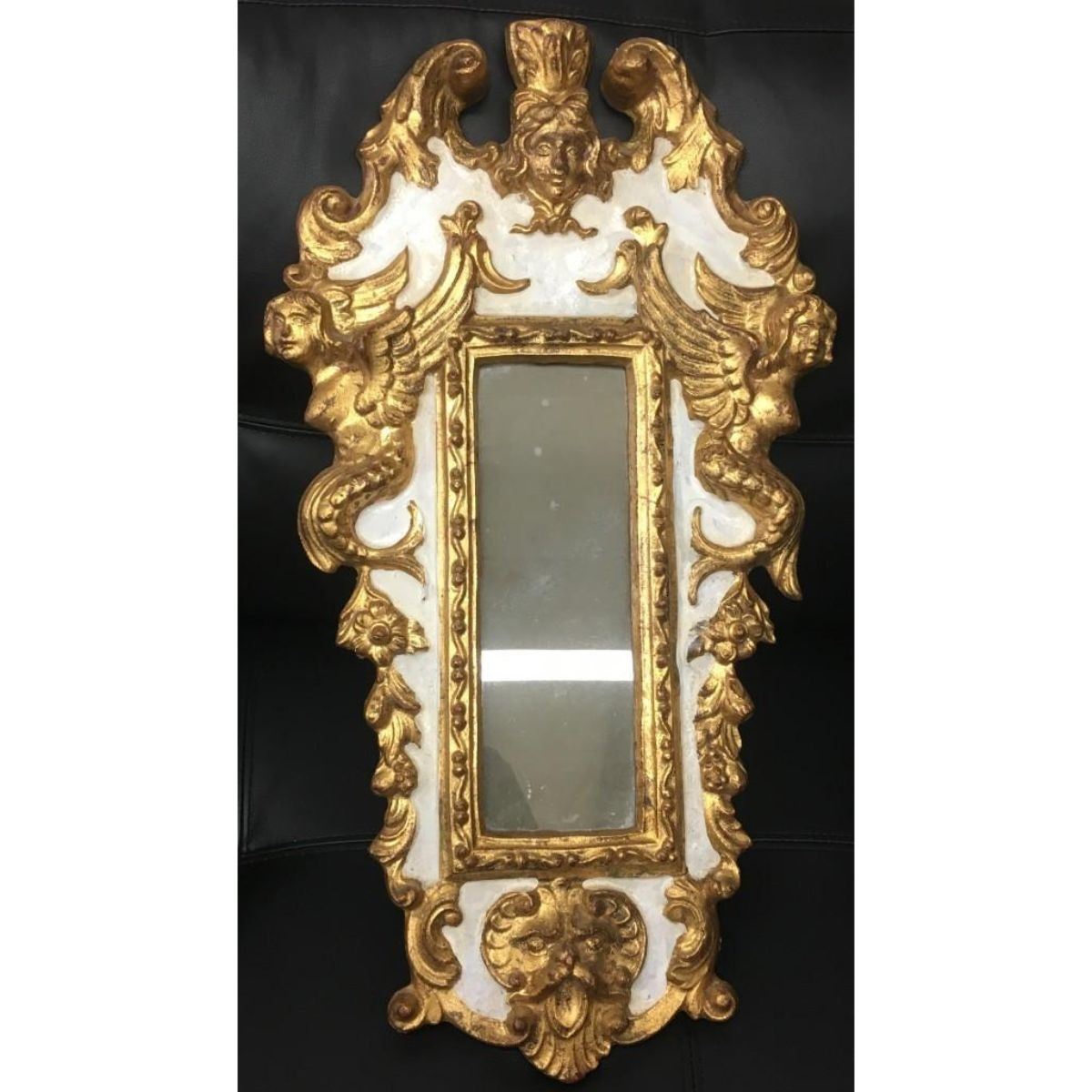 A 19th C. Ornate Gold Gilt Rococo Italian Florentine Mirror With Griffins & Cherubs 24" x13". An Excellent Example Of Italian Craftsmanship In A Beautiful Florentine Figural Design. An Excellent Condition Piece From The Turn Of The Century. View Photos For Further Details.
