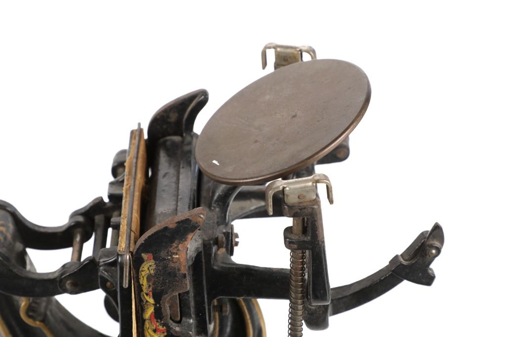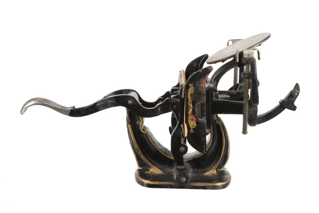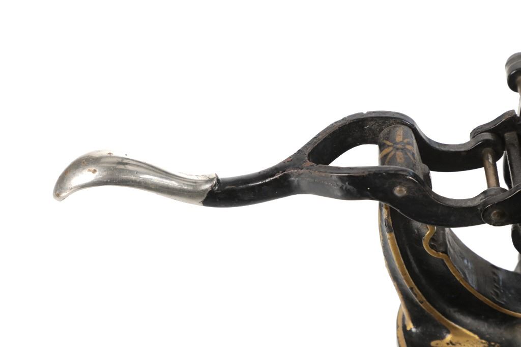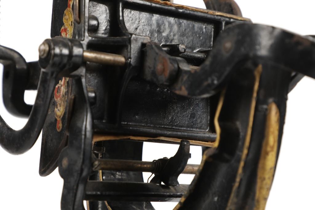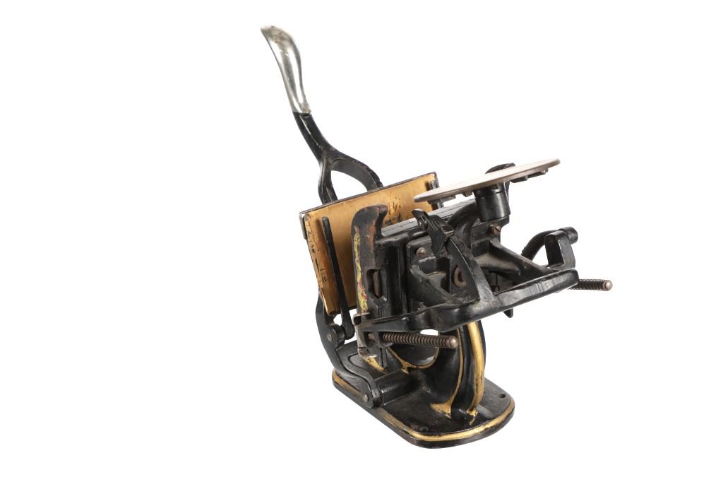 Featured in this lot is this Sigwalt Chicago #9 manual printing press circa 19th century. The printing press features a wonderfully and professionally crafted cast iron construction with a pre set not that reads as follows: Merry Christmas and Happy New Year Mr. and Mrs Griffare. The condition of this manual press is well preserved with some wear to the painted decoration and the coating on the metal frame but otherwise shows a well preserved condition. The measurements of this press is 10 1/2" x 13 3/4" x 6 1/2". The collective weight of this manual press is 14lb 8oz.