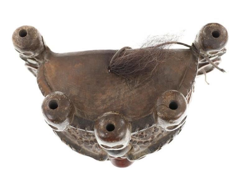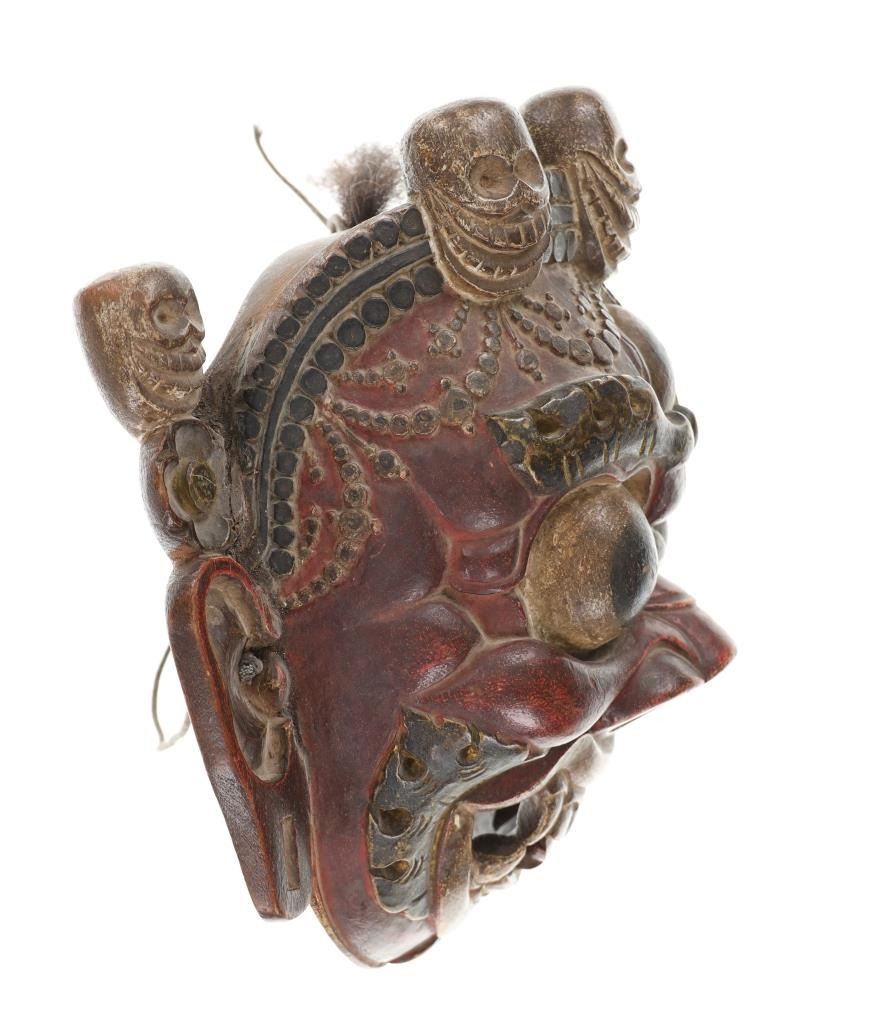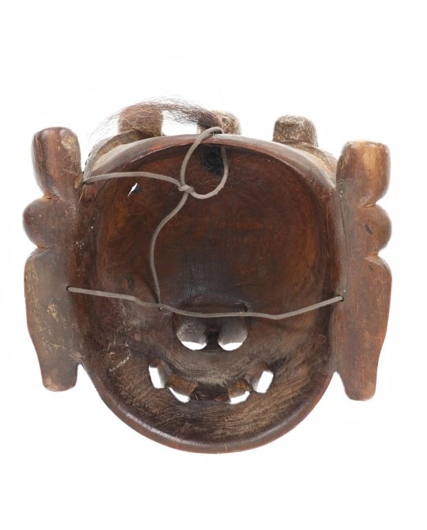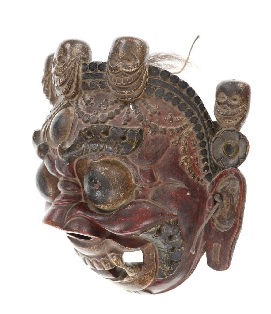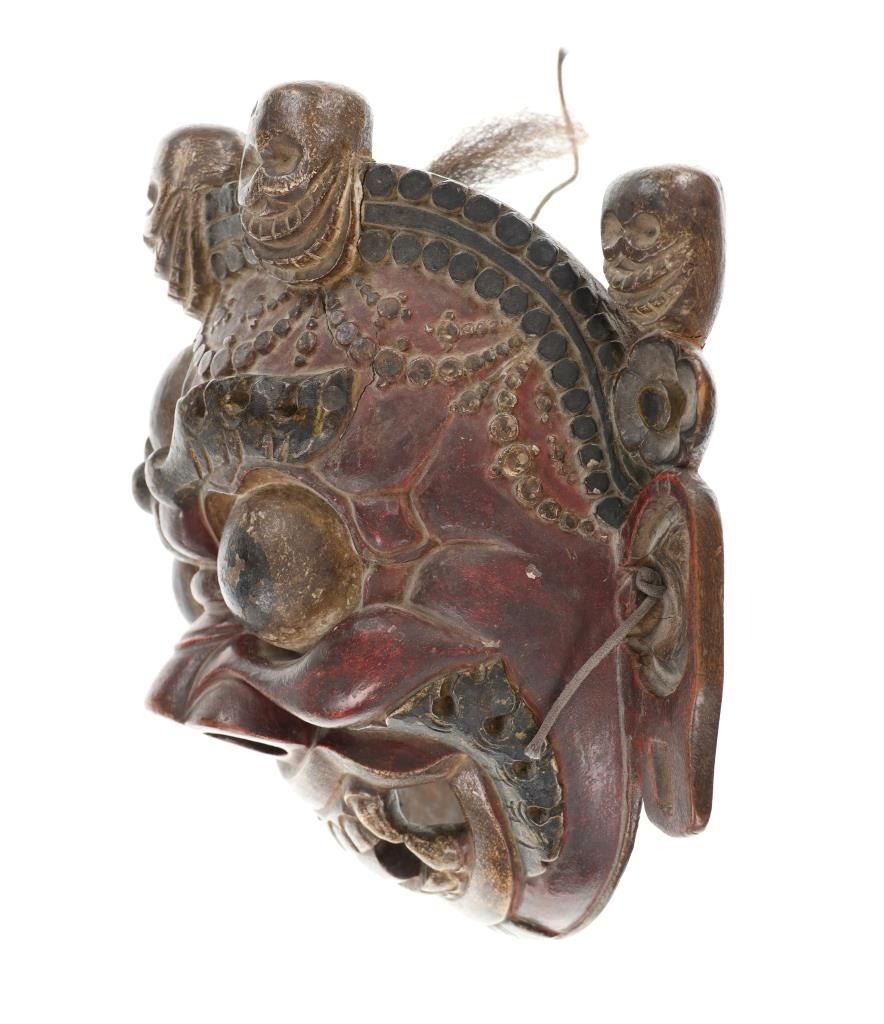 Featured in this lot is this original Tibetan Mongolian Mahakala mask circa 19th century that was published and comes with a certificate of authenticity. The mask features a wonderfully and professionally crafted wooden construction that shows a painted exterior with had carved decoration to the mask. The "Mahakala" Buddhist monastary mask from Tibet; thought, and awareness are "transcended" and one's true self is revealed. Ceremonial Buddhist masks metaphorically echo the same sentiment as they shield the true self from view. This mask comes complete with the Certificate of Authenticity from Butterfields & Butterfields (Bonhams) from 2014, and comes with a book with the exact mask presented in it on page 43. The mask also sold at a Bonhams Auction in 2016 for $5,250.00. The condition of this Tibetan or Mongolian mask is preserved with some wear to the wood and to the paint adorning the mask but otherwise shows preserved overall condition. The measurements of this mask is 13" x 13" x 7 1/2". The collective weight of this mask is 3lb 6oz.