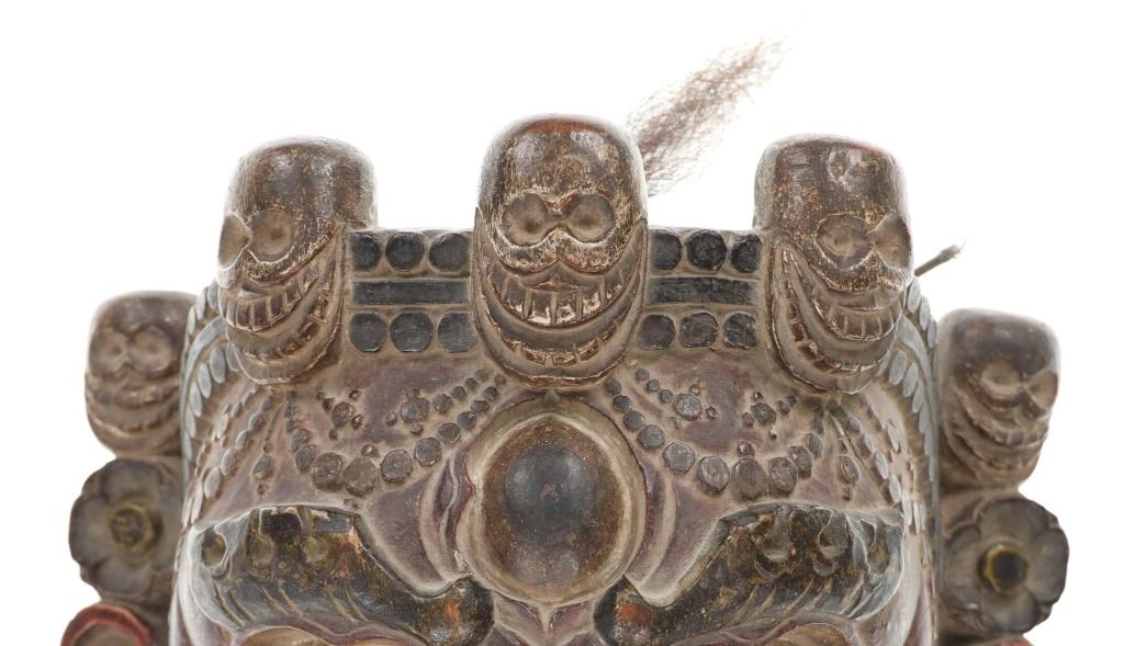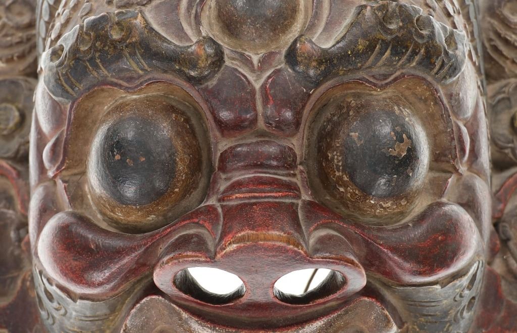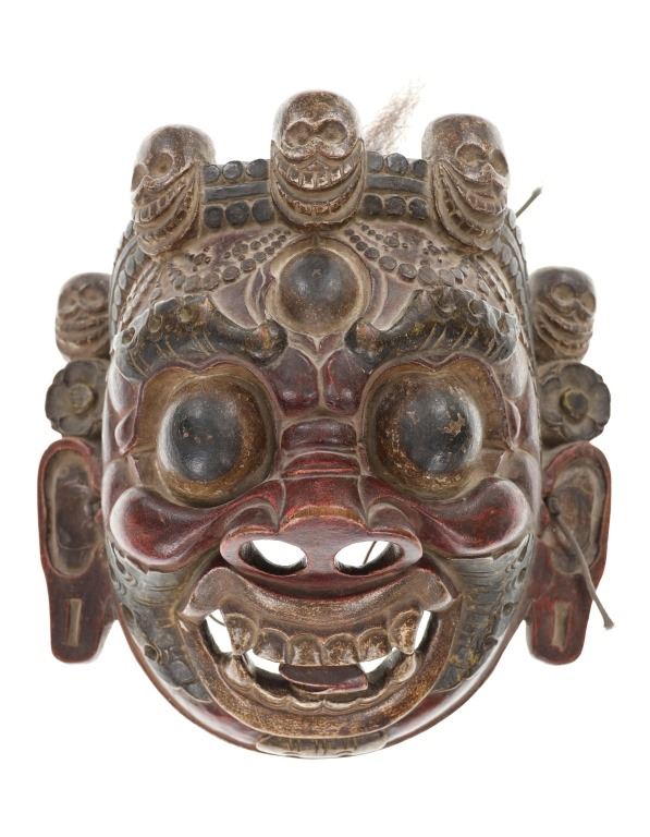 Featured in this lot is this original Tibetan Mongolian Mahakala mask circa 19th century that was published and comes with a certificate of authenticity. The mask features a wonderfully and professionally crafted wooden construction that shows a painted exterior with had carved decoration to the mask. The "Mahakala" Buddhist monastary mask from Tibet; thought, and awareness are "transcended" and one's true self is revealed. Ceremonial Buddhist masks metaphorically echo the same sentiment as they shield the true self from view. This mask comes complete with the Certificate of Authenticity from Butterfields & Butterfields (Bonhams) from 2014, and comes with a book with the exact mask presented in it on page 43. The mask also sold at a Bonhams Auction in 2016 for $5,250.00. The condition of this Tibetan or Mongolian mask is preserved with some wear to the wood and to the paint adorning the mask but otherwise shows preserved overall condition. The measurements of this mask is 13" x 13" x 7 1/2". The collective weight of this mask is 3lb 6oz.