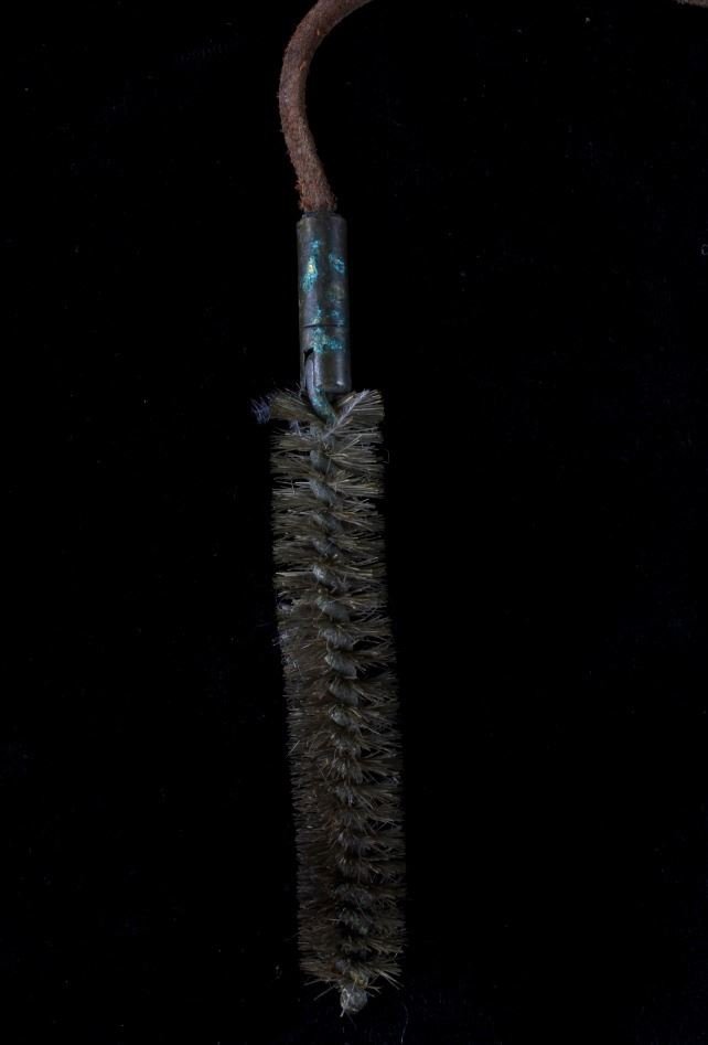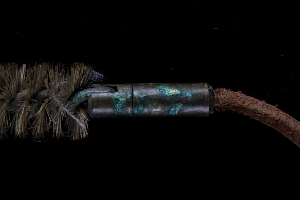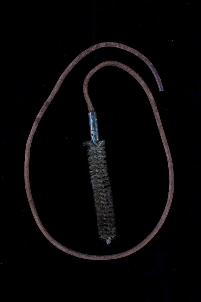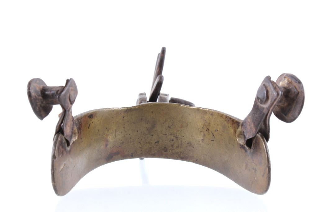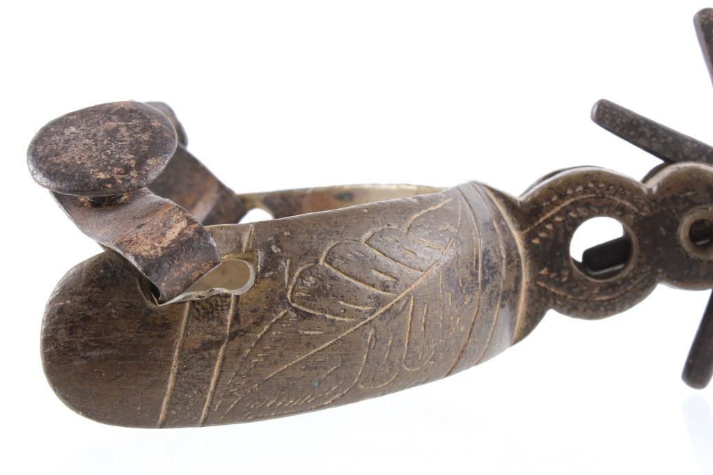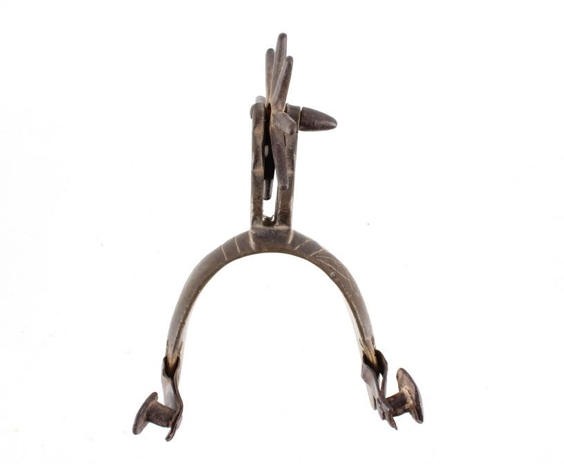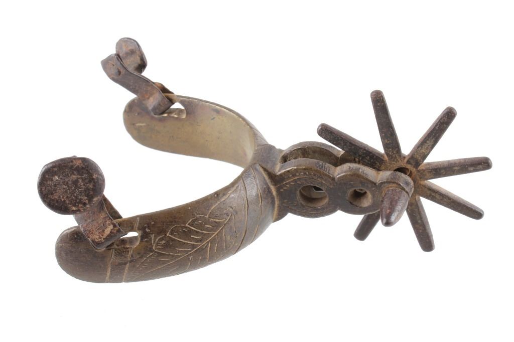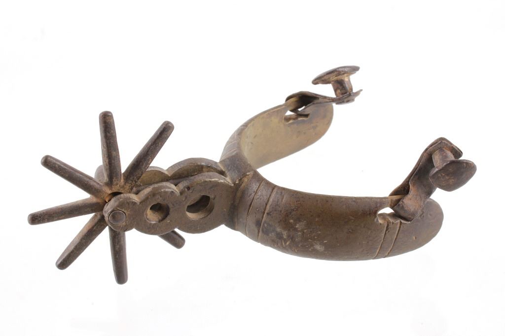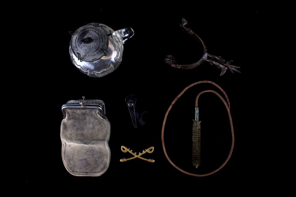 For your consideration is this 19th C. vaquero personal antiquities collection including a single spur, cross sword cavalry pin, gun barrel cleaning copper bore, gunsmith handy tool, a personal leather pouch/ wallet, and a glass oil lamp. Each of these items shows 19th C. origins and all tie into each other through that time period. The condition of these pieces is good the condition varies but they all correctly show their age with consistent wear to how old they are. The measurements of these items range from 2 3/4" x 1 1/4" for the gun tool, and 30" long for the gun barrel cleaner, and 1 1/4" x 2 3/4" for the brass cavalry , and 2 1/2" x 3 1/4" x 3 1/2" for the spurs7" x 4" for the wallet.