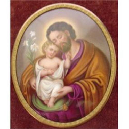 Fine 19th Century hand painted Vienna plaque depicting Joseph holding a baby Jesus. Encased in a standing velvet rimmed frame, this beautiful plaque is in excellent condition. Impressed Vienna Beehive mark on the back of the plaque. This plaque in the frame measures 5" by 5 3/4".