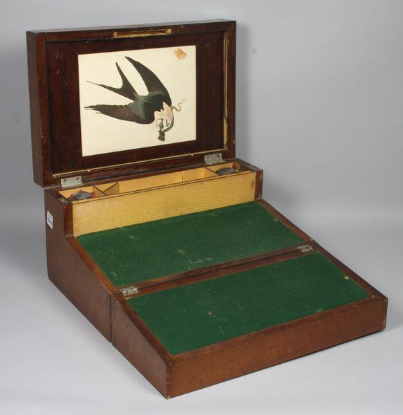 19th Century brass-bound mahogany traveling desk, 9 1/4" h. x 16 1/2" w. x 11" d. Box imperfections.
