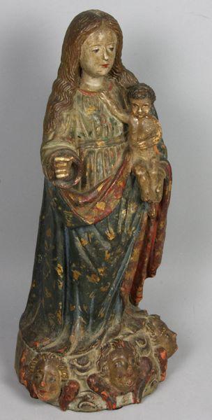 19th Century terracotta paint decorated santo, 13 1/2" h. Old repairs. Property of the late Robert O. Peterson, San Diego, CA.