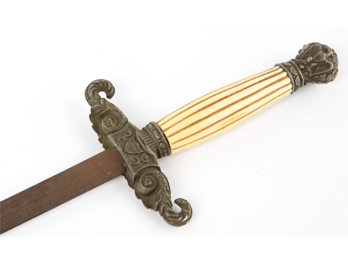 19th CENTURY AMERICAN MILITIA NCO SWORD Bone handle. Type: Sword militia Country: US Blade Length: 27" Overall Length: 33.5" Provenance: From the collection of Darryl E. Kinnison