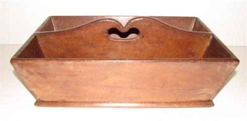 19TH CENUTRY DOVETAILED WALNUT FLATWARE BOX WITH CARVED HANDLE. 14” Long. Excellent Condition.