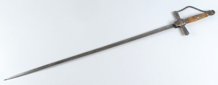 19th or possibly early 20th Century Ancient Order of Hibernians ceremonial sword. The blade with etched decoration incorporating the words "Company A Hibernian Knights". Complete with scabbard with A.O.H. symbolism. An excellent piece from an extremely interesting fraternal organisation.
