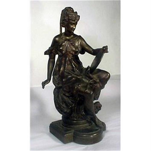 Here is quite the spectacular small sized bronze most likely depicting one of the muses in Greek Mythology. It appears that she is holding a tablet in her left hand and planning something to write something with the right hand. I can?t begin to tell you so I hope you can see in the pictures the extremely fine detail ? everything is so exceptional ? everything is so well defined. The movement is smooth and flowing and her facial features are absolutely demure. An amazing sculpture! I absolutely love when I have the opportunity to find these small bronzes like this one which are very difficult to acquire. So here we are with this lovely lovely female bronze with an absolutely exquisite rich and wonderful surface patina. It is signed on the back column. It measures 10 ½? at highest x 5 1/5? at deepest x 5? at widest.