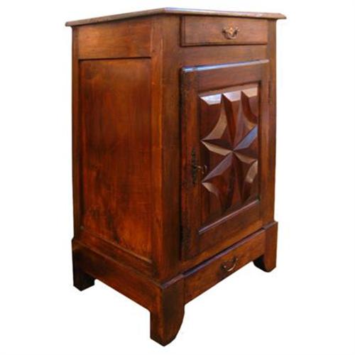 A wonderful 19th century confiturier (cabinet) in solid, hand carved walnut, two drawers, from the French Alps.</em></td>