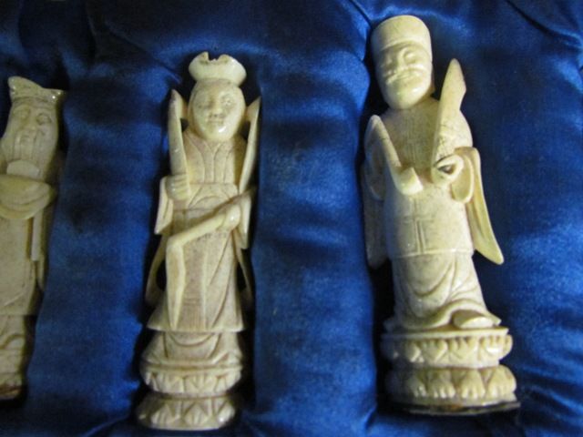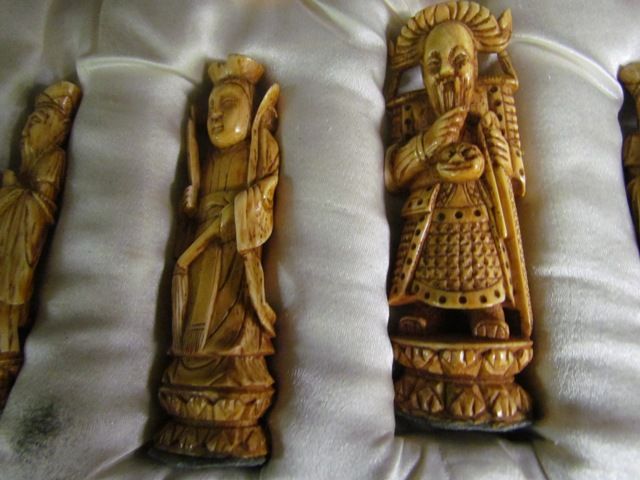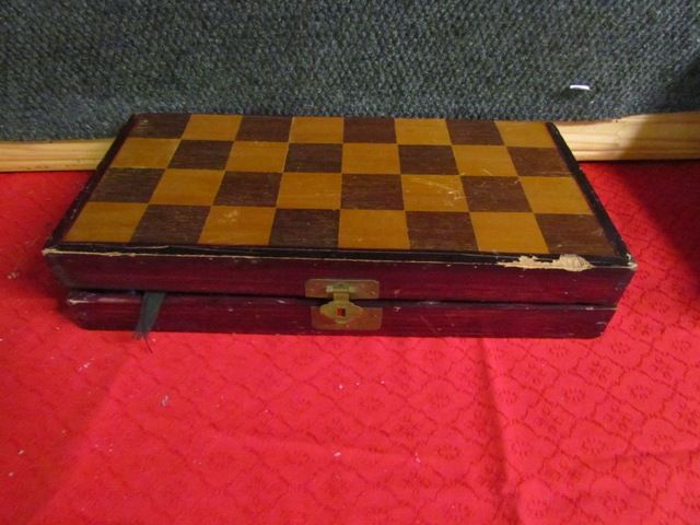 19th Century Handcarved Chinese Chest Set with playing Board - Bone