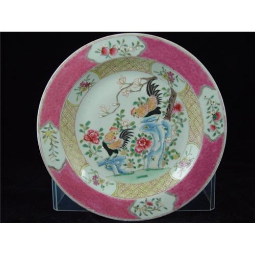 A fabulous Chinese Export plate decorated with two fighting cocks. Diameter: 8.7 Inch. $10 for Shipping and Handling within the US. At cost World wide. Excellent condition with minimum gilt loss. No chips. No crack. No restoration