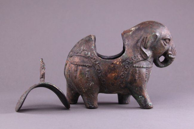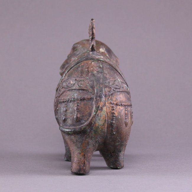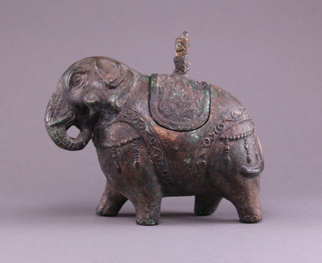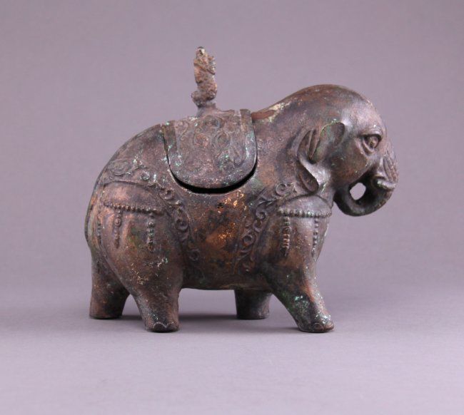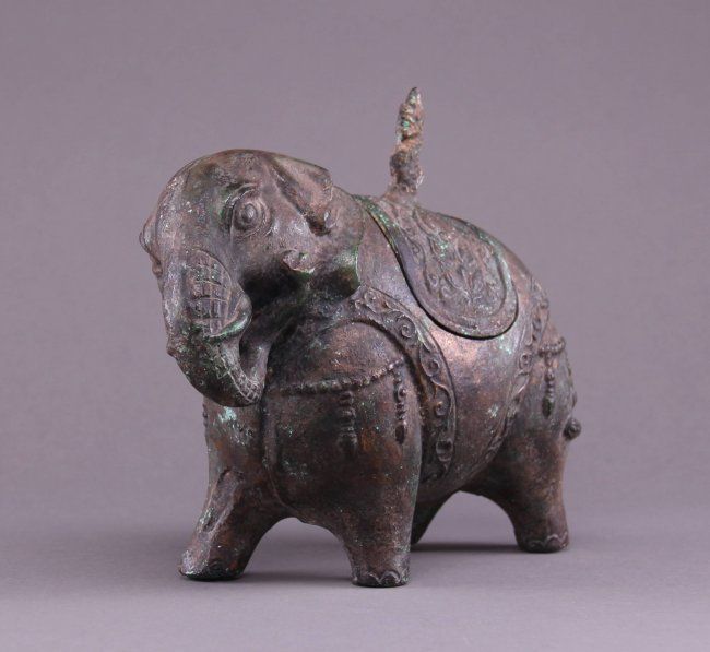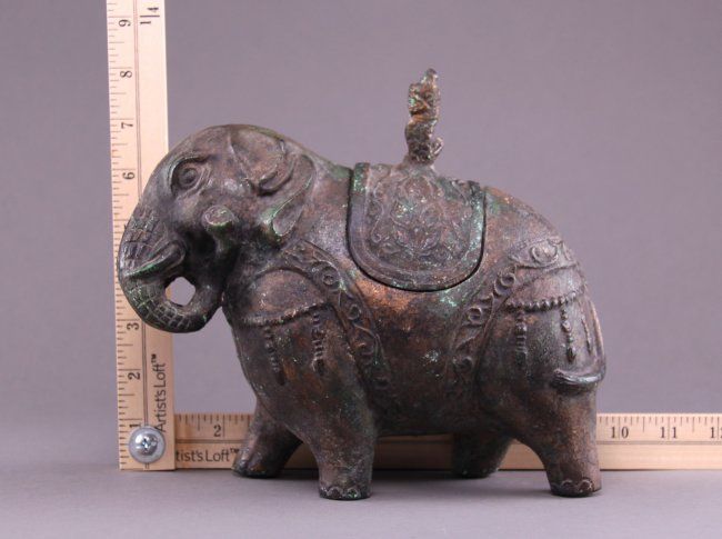 19th Century Chinese bronze figural censer of a decorated Elephant, cast in two parts. The ornament saddle lifts off the Elephants back. A beautiful incense burner. (Size: See last photo for measurement.) Photos are part of the description representing the condition report. Pangaea Auctions urges Bidder's to view all attached photos.