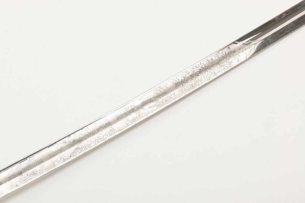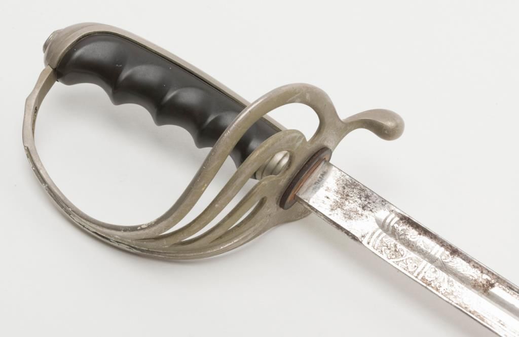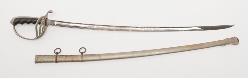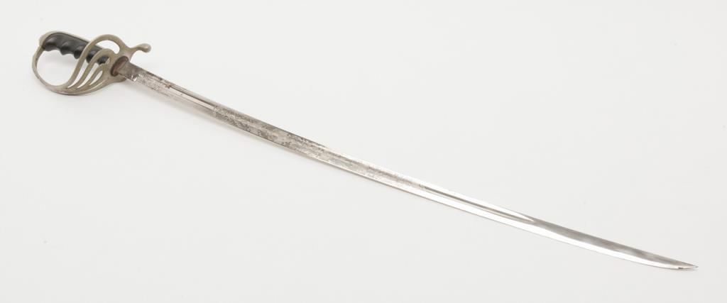 19th Century Chinese short sword with fancy brass mounts showing crest at center. Good condition; no scabbard. Est.: $200-$400.