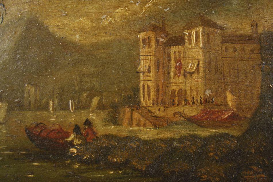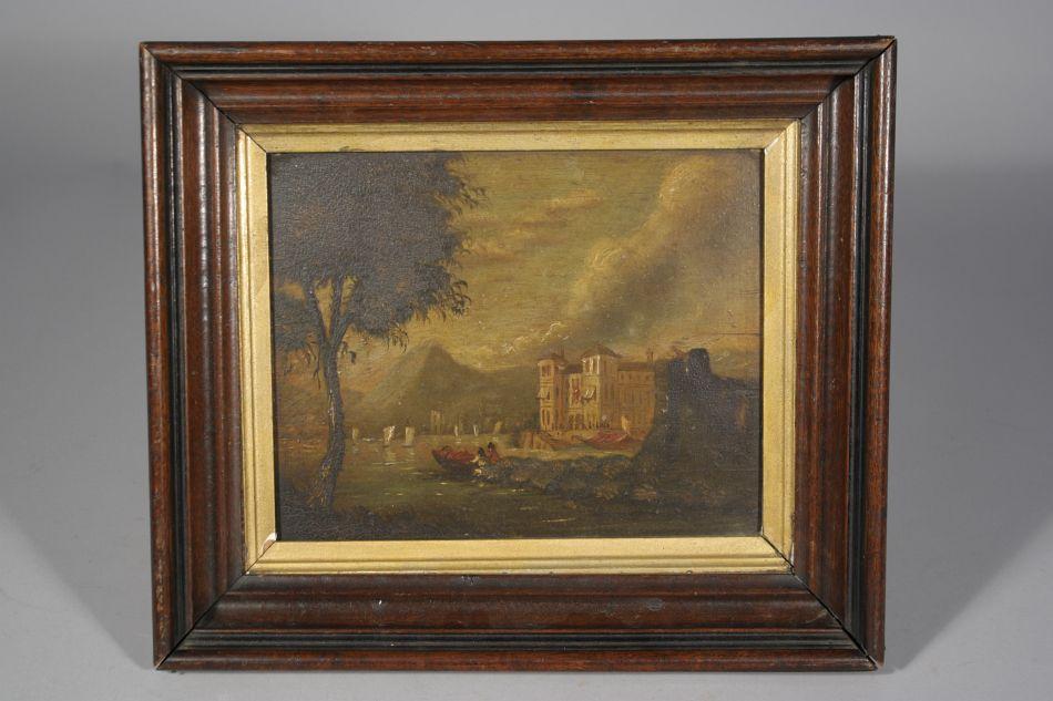 19th Century Continental School, Port Scene with Figures, Oil on board,