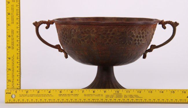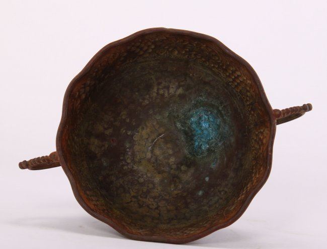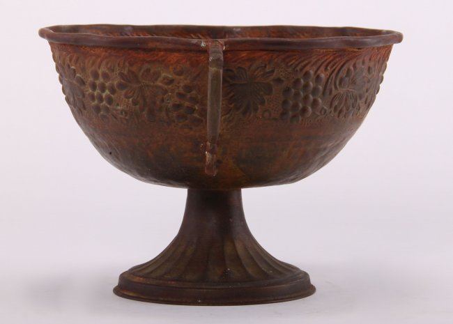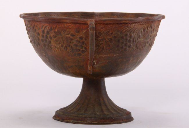 19th Century Copper Bowl with Grecian design of flowers and grapes throughout. SIZE: see attached ruler photo. Photos are part of the description representing the condition report and can be used for authentication prior to the auction date. Pangaea Auctions urges Bidder's to view all attached photos in detail. #(European, Antique, Metal ware, Bowl, Copper, , )
