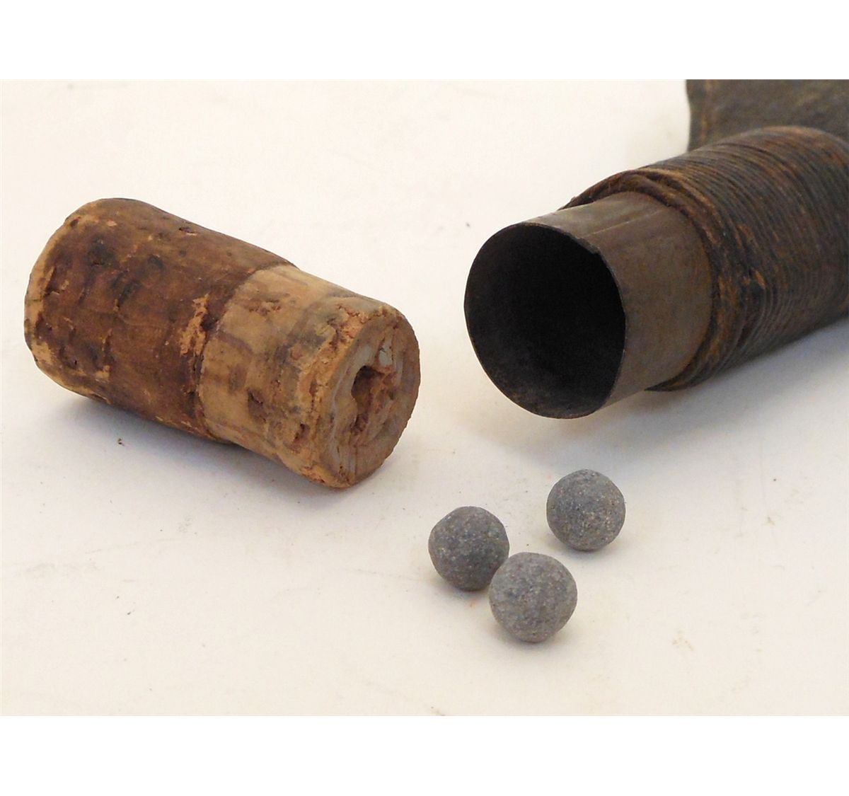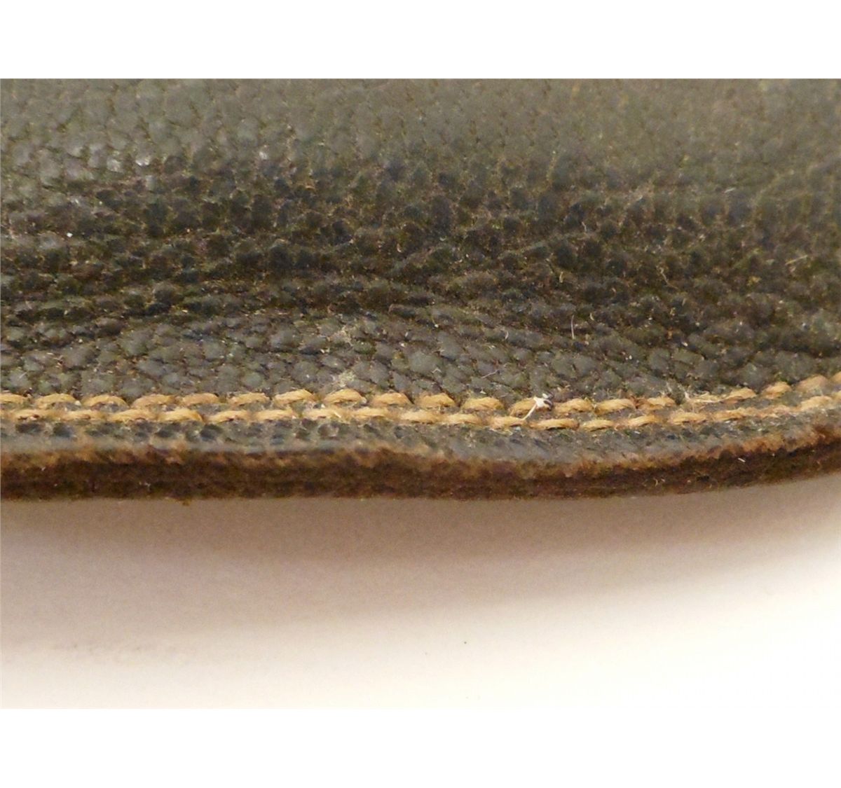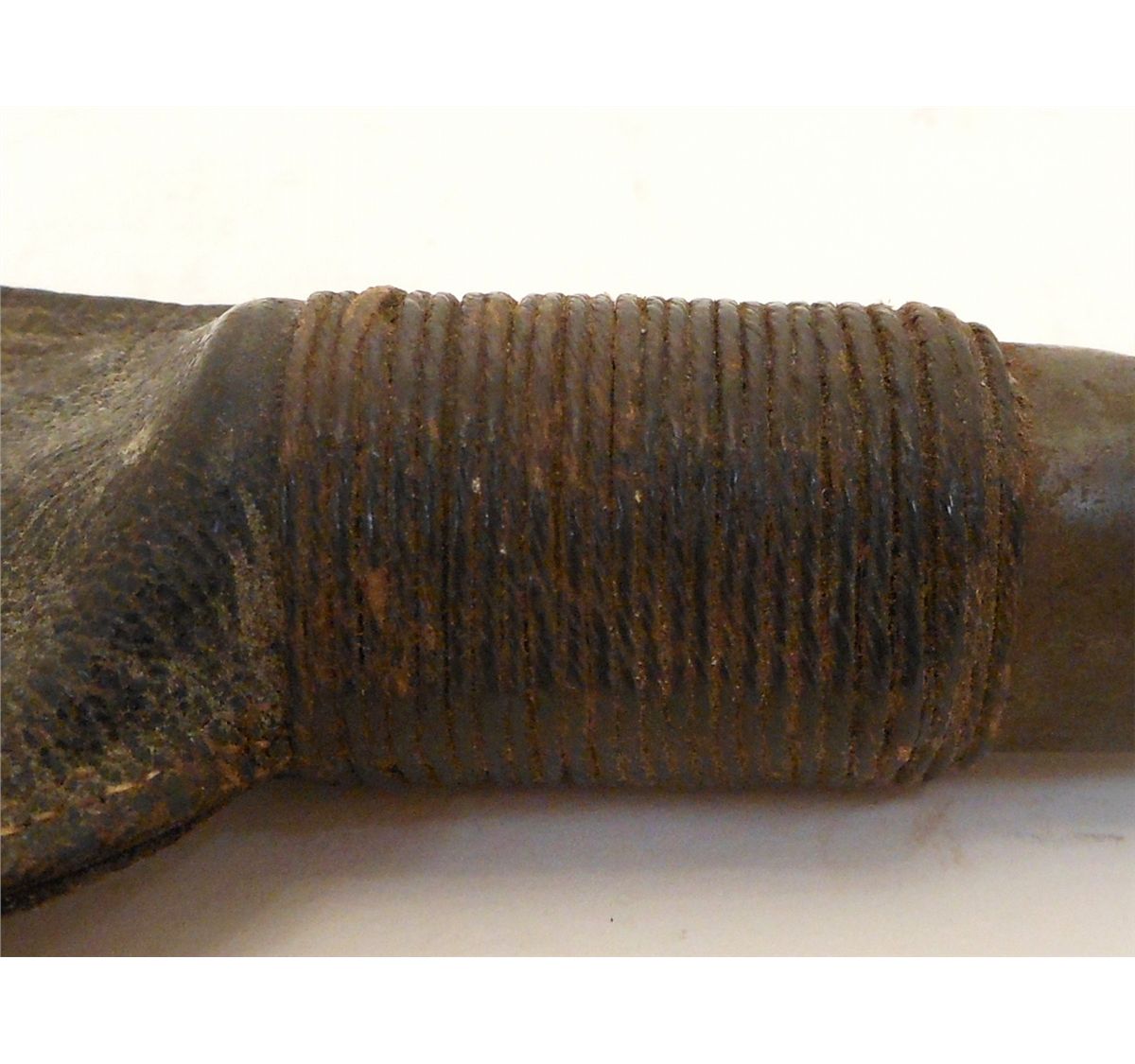7 1/4" leather ball flask with corked metal spout, leather is pliable. Great condition.