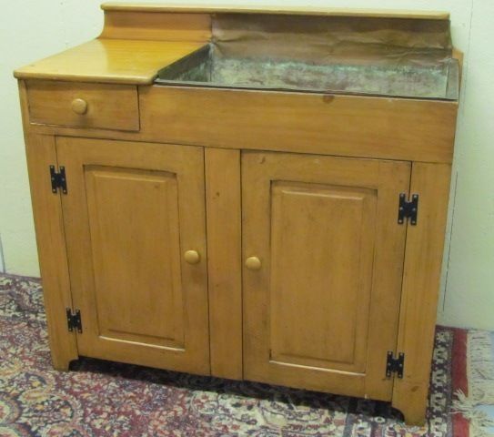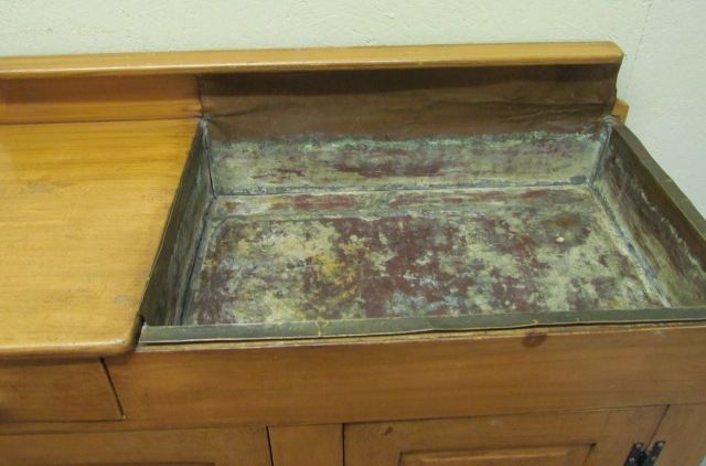 19th Century Richmond VA area Dry Sink with Copper Lining, single side drawer over 2 base Panel doors - Ogee feet