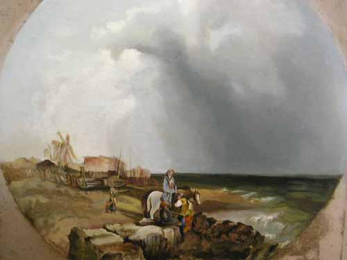 19th Century Dutch School - coastal scene - oil on canvas, framed to the tondo, Dia 50cms...