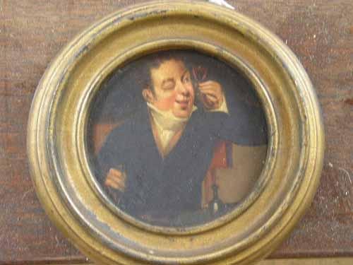19th Century English School - portrait of a toper - oil on board, tondo, Dia 8cm...