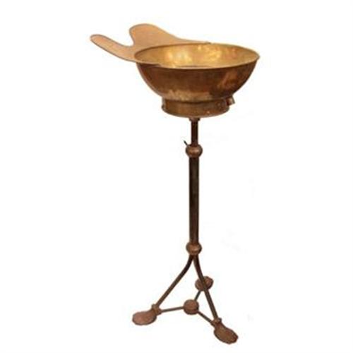 Interesting French Napoleon III period barber stand with an iron base and brass basin. Beautiful patina in the brass. From Nice, c. 1875. A wonderful jardiniere or plant stand.