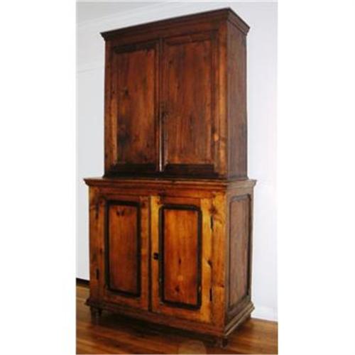19th century French double-corps cabinet in solid pine from Provence, c. 1890. The top section is detachable and alone measures 44" H x 40" W x 16.5" D. Each section has one shelf in the middle. Fabulous kitchen piece.