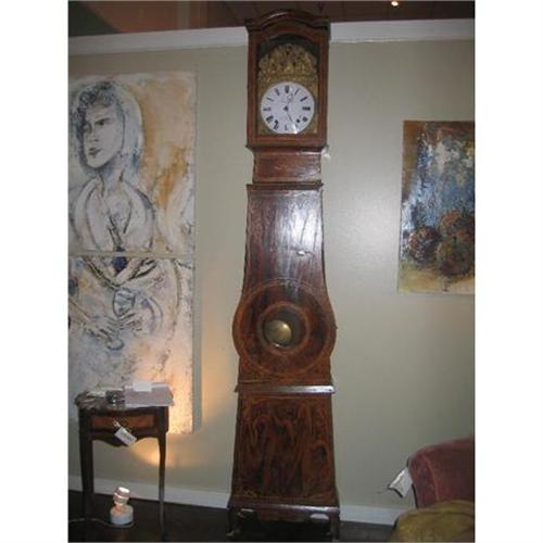 <table width="100%" border="0" cellspacing="0" cellpadding="4"><tr><td><em> </em></td></tr><tr> <td width="100%"> 19th-century French grandfather clock from the Morbiers region of the French Alps. Solid hand-painted pine, with repeater movement system. Traditional faux painting technique typical of Morbiers clocks. Gorgeous hand-hammered brass relief scene over the face. Works well and chimes every half hour. c. 1820. </td></tr><tr> <td> </td></tr><tr> <td>Reference #: X201</td></tr><tr><td>Condition:good</td></tr><tr><td>Year:c. 1820</td></tr><tr><td>Country:France</td></tr><tr><td>Height:96.5</td></tr><tr><td>Depth:9.75</td></tr><tr><td>Width:21</td></tr><tr><td>Title:19th-Century French Grandfather Clock</td></tr><tr><td>Style:Alpine</td></tr><tr><td>Materials:pine and hand-embossed brass</td></tr><tr><td>Location:Austin, TX</td></tr></table>