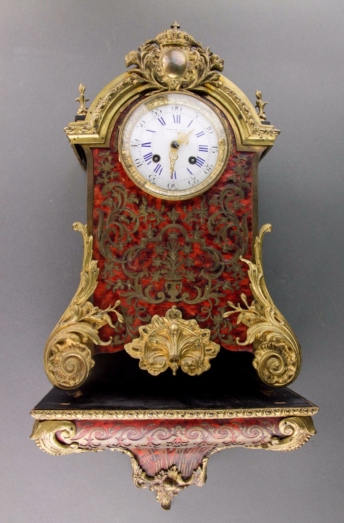 French Jarossay and Cie Loui XIV style wall clock; with Rococo style gilt carving of flower decoration; "JAROSSAY & CIE A PARIS" mark on clock face; 19th century; in working condition with adjust keys; H: 40 cm, W: 29 cm, 6 kg