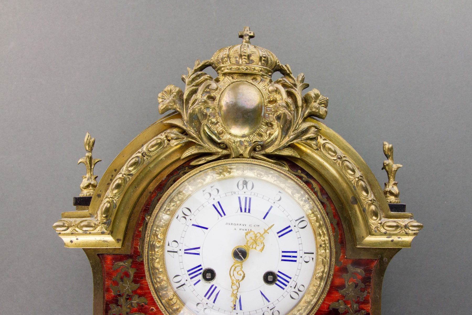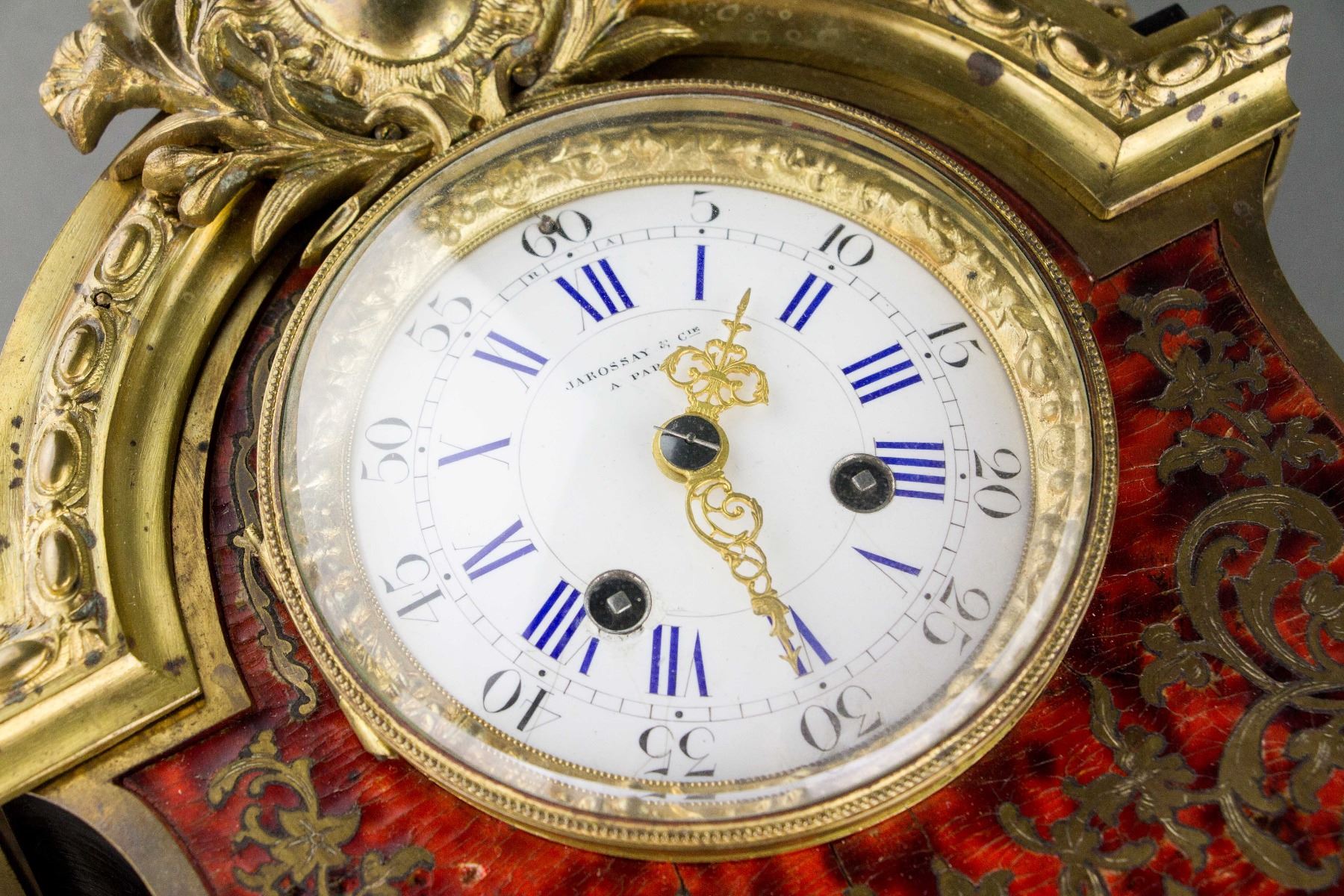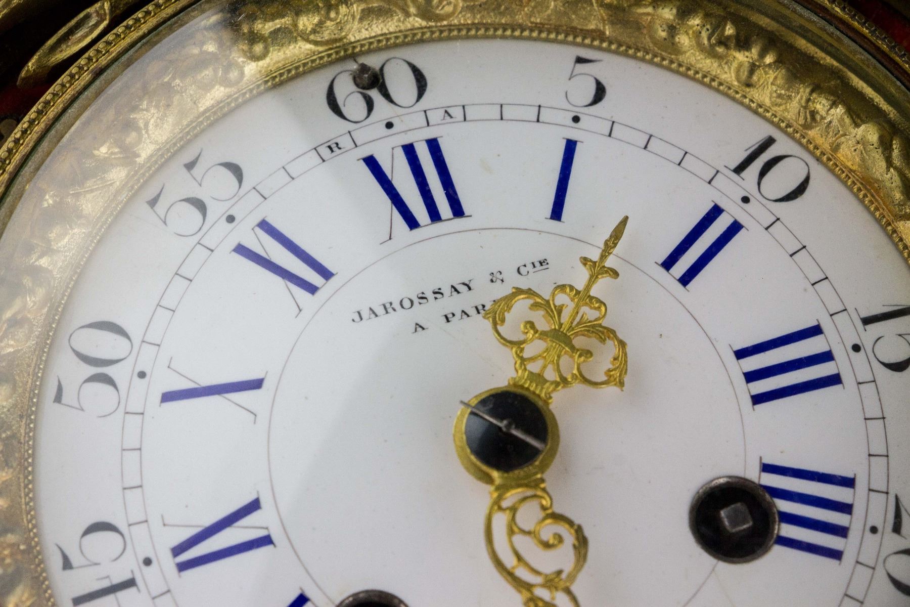 French Jarossay and Cie Loui XIV style wall clock; with Rococo style gilt carving of flower decoration; "JAROSSAY & CIE A PARIS" mark on clock face; 19th century; in working condition with adjust keys; H: 40 cm, W: 29 cm, 6 kg