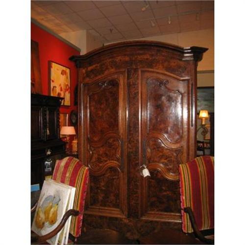 <table width="100%" border="0" cellspacing="0" cellpadding="4"><tr><td><em> </em></td></tr><tr> <td width="100%"> Magnificent early 19th century French Louis XV style armoire in solid walnut and burled walnut. The burling is intricate and rich, with a beautiful tone. From St. Etienne, c. 1820. Gorgeous and rare quality. </td></tr><tr> <td> </td></tr><tr> <td>Reference #: W1</td></tr><tr><td>Condition:Excellent</td></tr><tr><td>Year:1820</td></tr><tr><td>Country:France</td></tr><tr><td>Height:95</td></tr><tr><td>Depth:20.5</td></tr><tr><td>Width:58.5</td></tr><tr><td>Title:19th-Century French Louis XV Style Armoire</td></tr><tr><td>Style:Louis XV</td></tr><tr><td>Materials:Solid and Burled Walnut</td></tr><tr><td>Location:Austin, TX</td></tr></table>