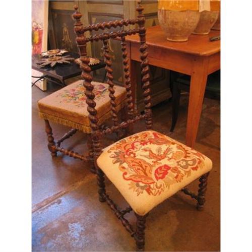 19th century French Louis XIII style nursing chair in solid walnut with torsado detail and original needlepoint seat from the Burgundy.